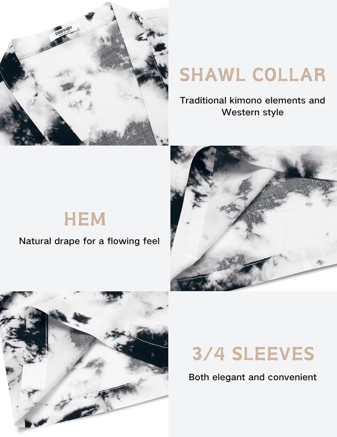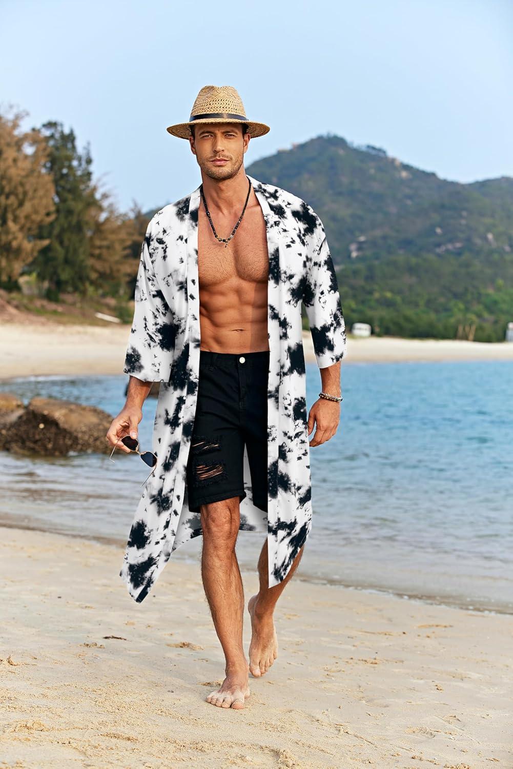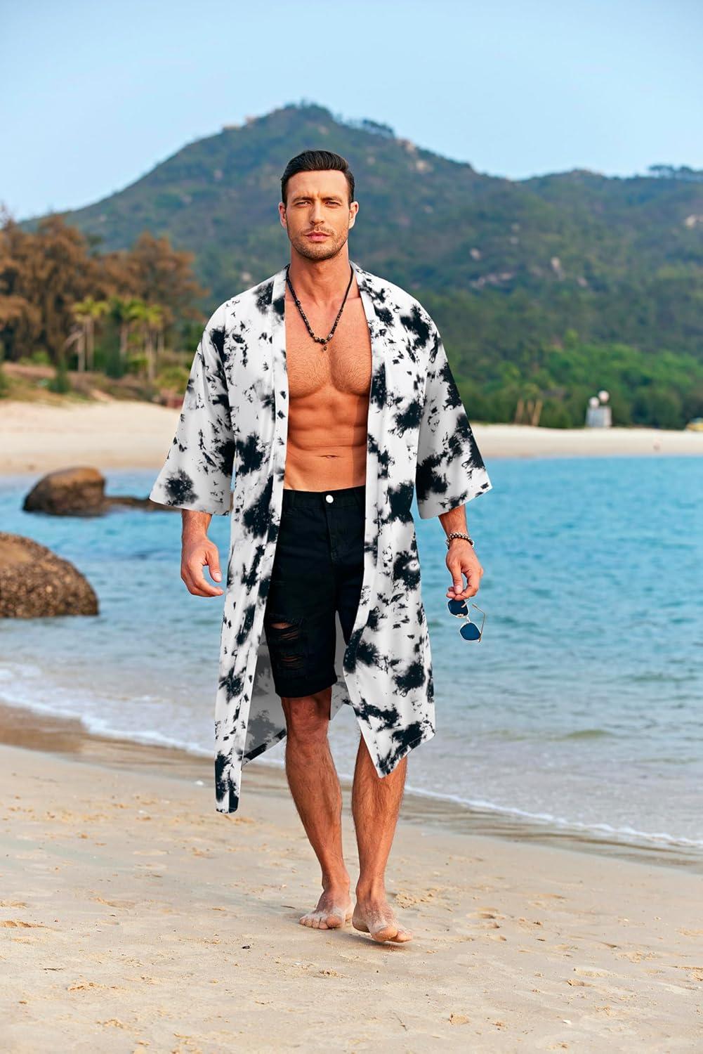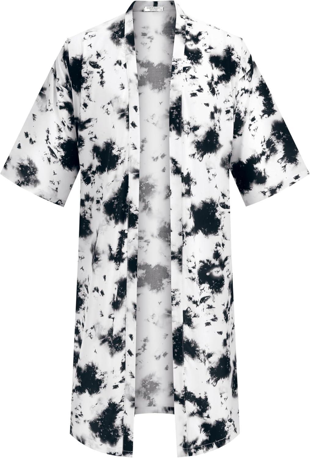 COOFANDY Men’s Lightweight Kimono Robe Jacket Printed Japanese Style Bathrobes Casual Open Front Long Cardigan Coat Outwear(Black White (Tie-dye Style))