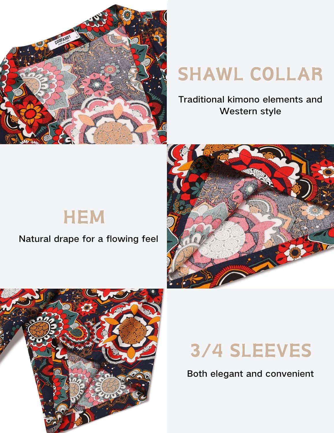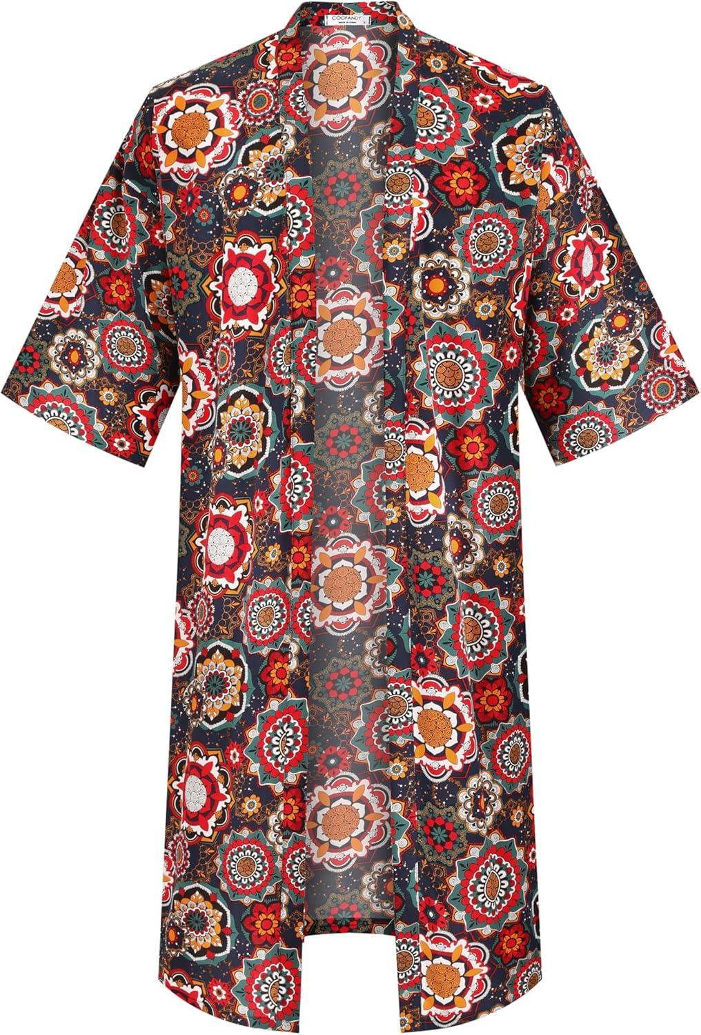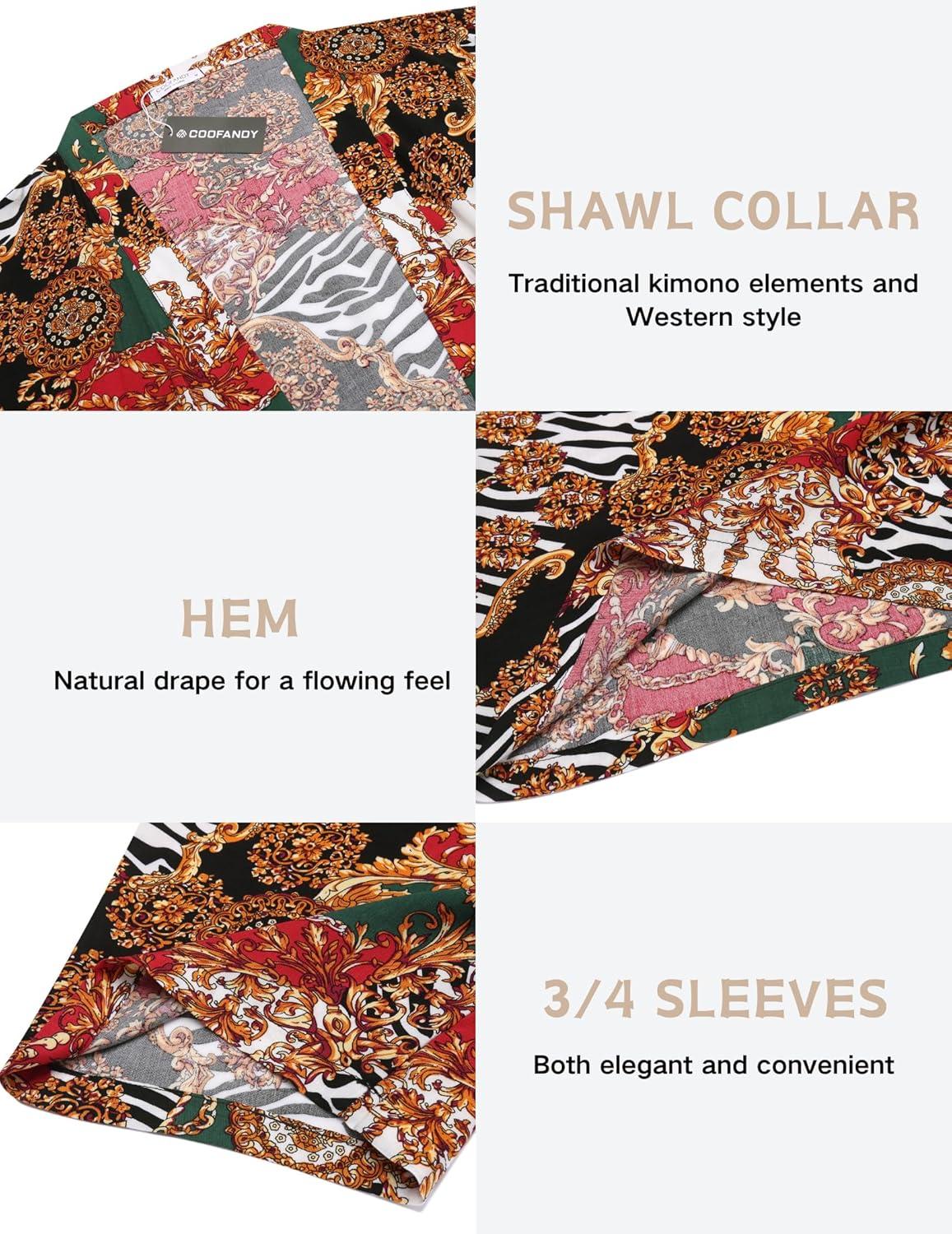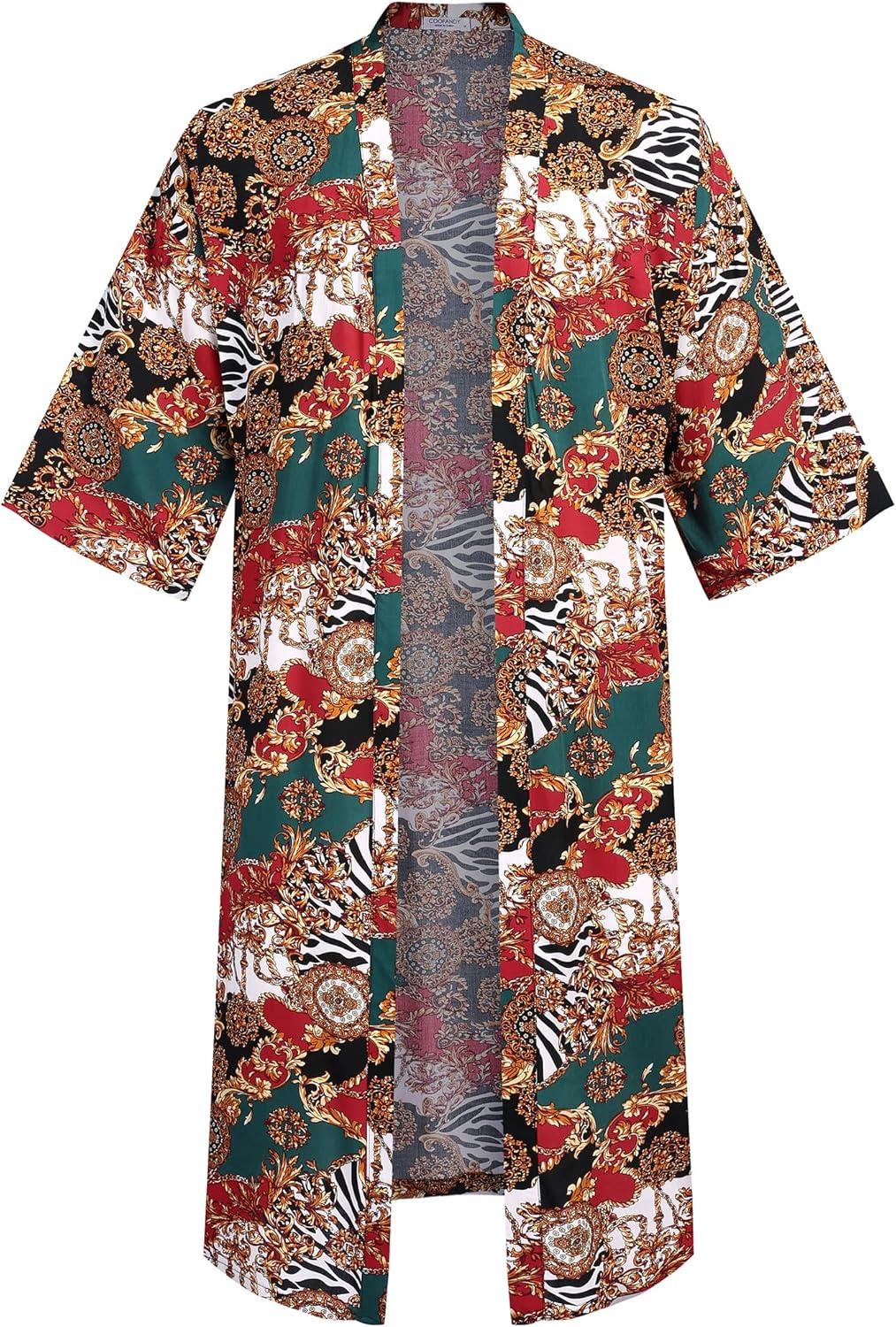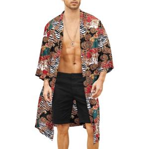 COOFANDY Men’s Lightweight Kimono Robe Jacket Printed Japanese Style Bathrobes Casual Open Front Long Cardigan Coat Outwear(Red(luxury Print))