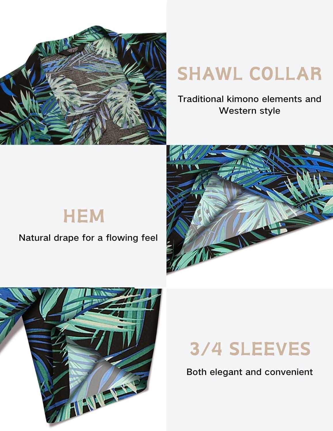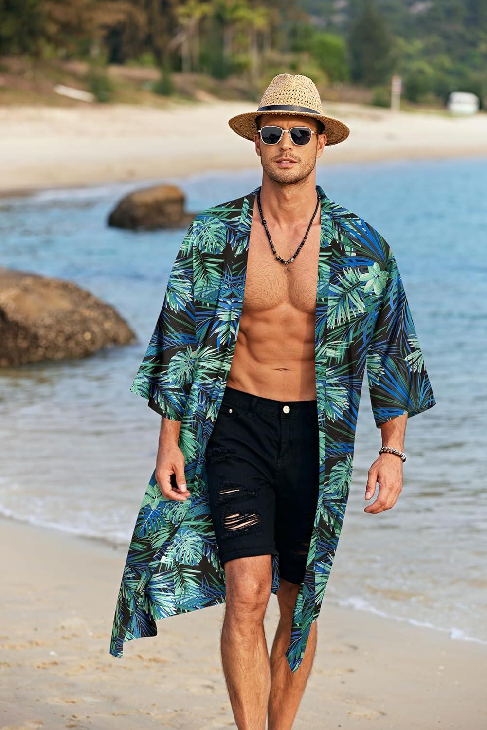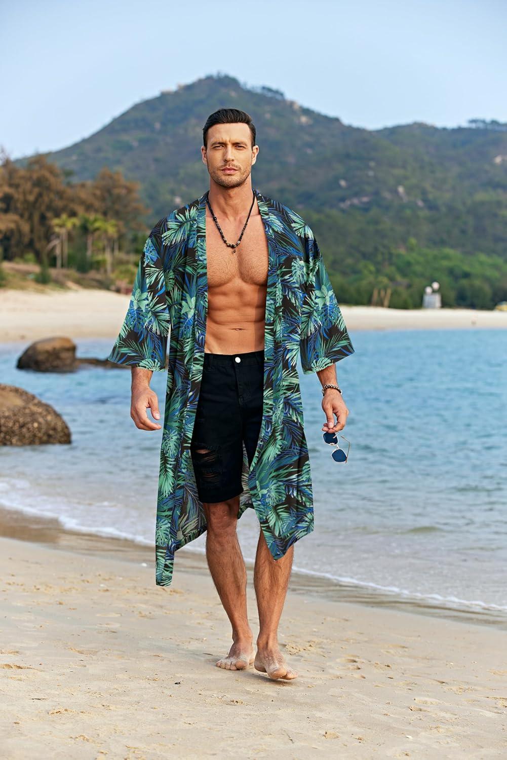 COOFANDY Men’s Lightweight Kimono Robe Jacket Printed Japanese Style Bathrobes Casual Open Front Long Cardigan Coat Outwear(Green)