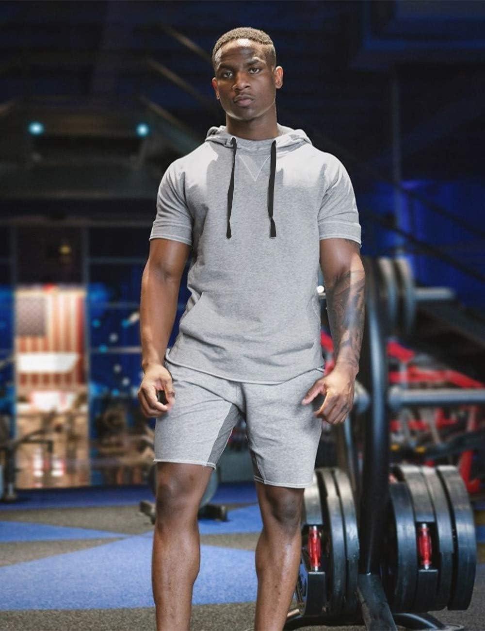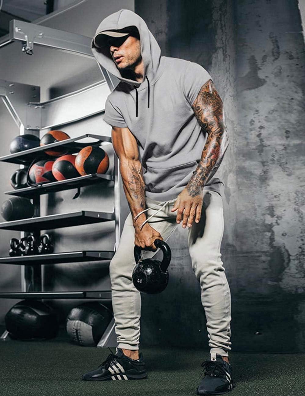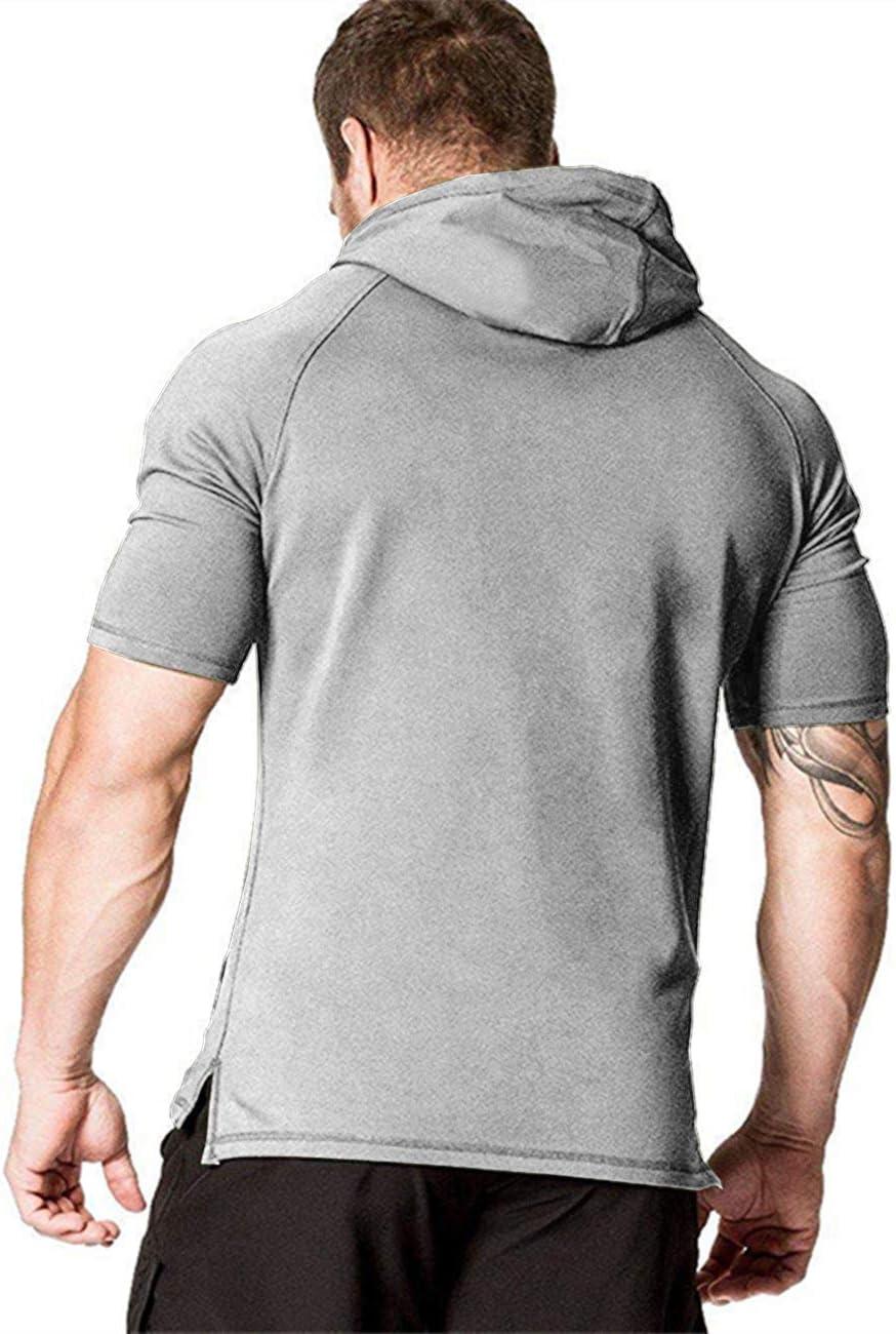 COOFANDY Men’s Short Sleeve Hoodie Workout Gym Sweatshirt Muscle Fit Fashion Athletic Hoodies Pullover Cotton Hooded T-Shirts(Grey)