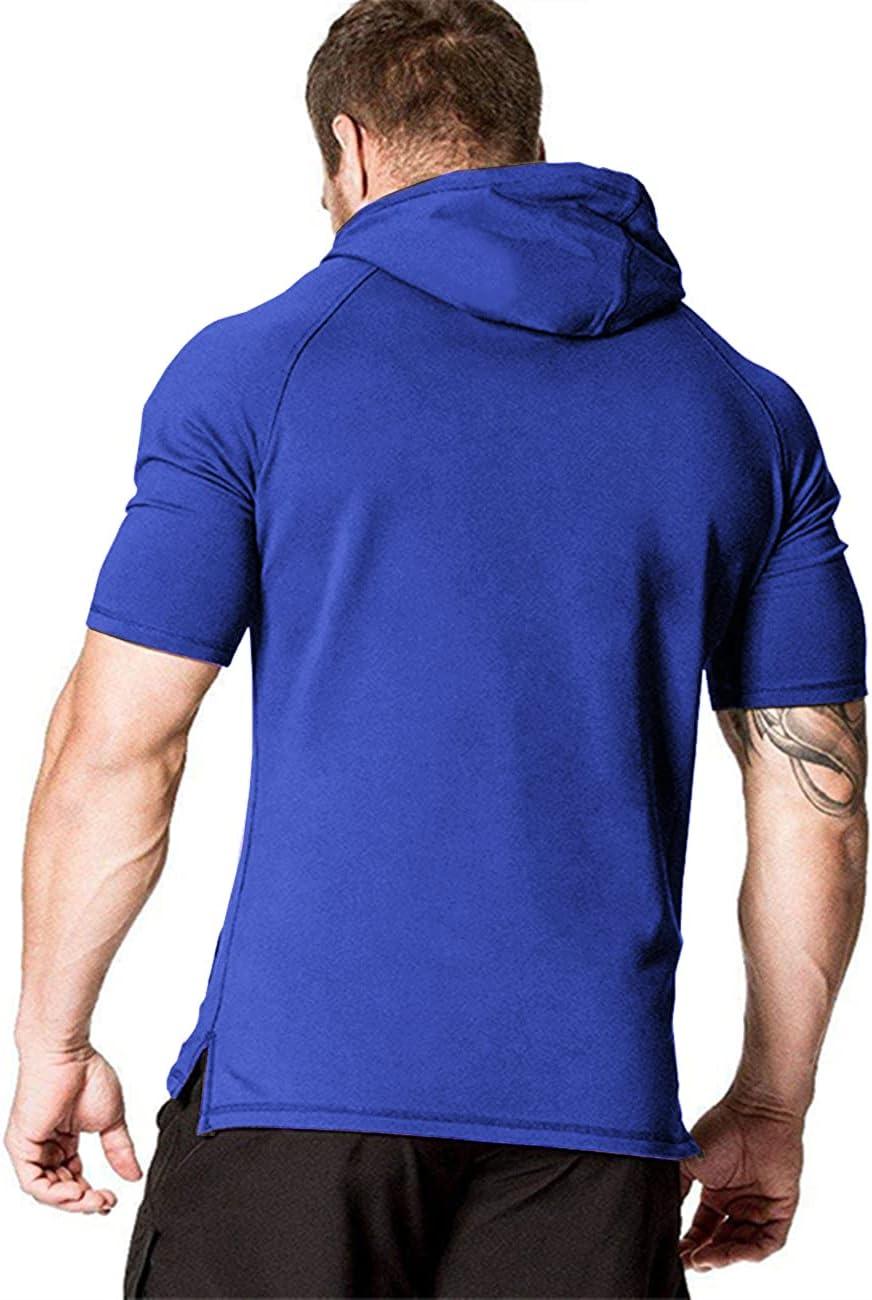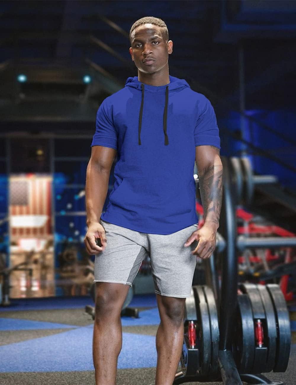 COOFANDY Men’s Short Sleeve Hoodie Workout Gym Sweatshirt Muscle Fit Fashion Athletic Hoodies Pullover Cotton Hooded T-Shirts(Snorkel Blue)