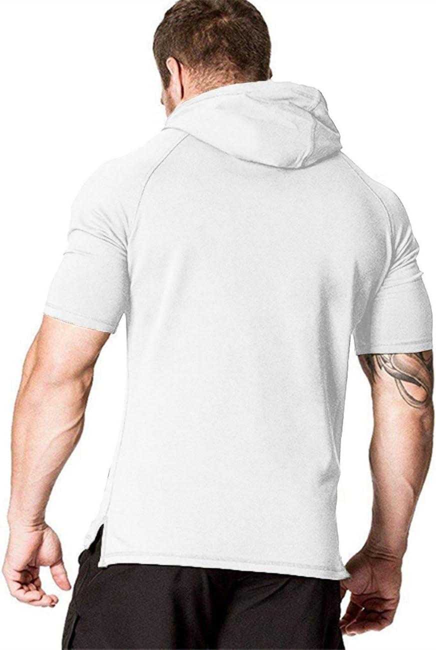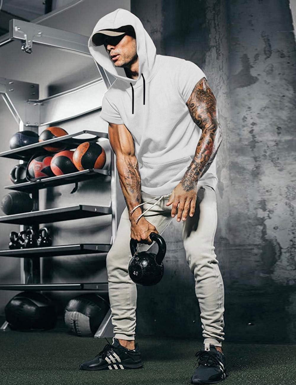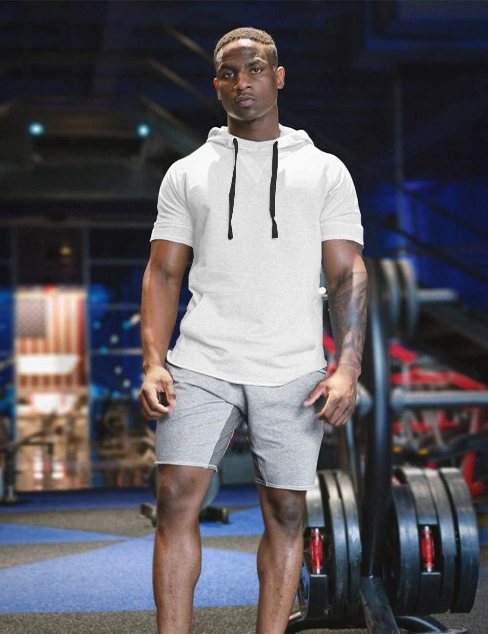 COOFANDY Men’s Short Sleeve Hoodie Workout Gym Sweatshirt Muscle Fit Fashion Athletic Hoodies Pullover Cotton Hooded T-Shirts(White)