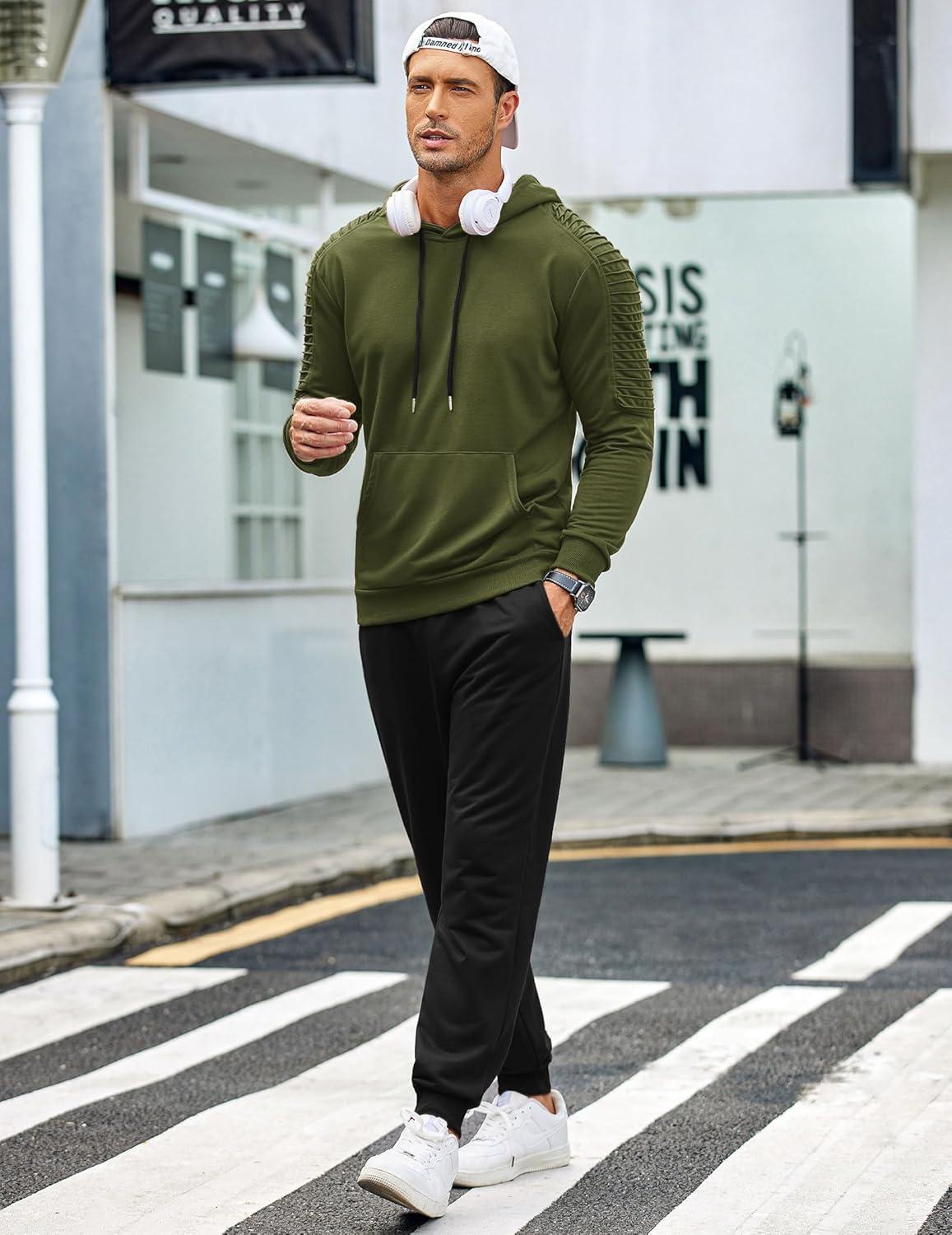 COOFANDY Men’s Tracksuit 2 Piece Hoodie Sweatsuit Sets Casual Jogging Athletic Suits(Army Green)