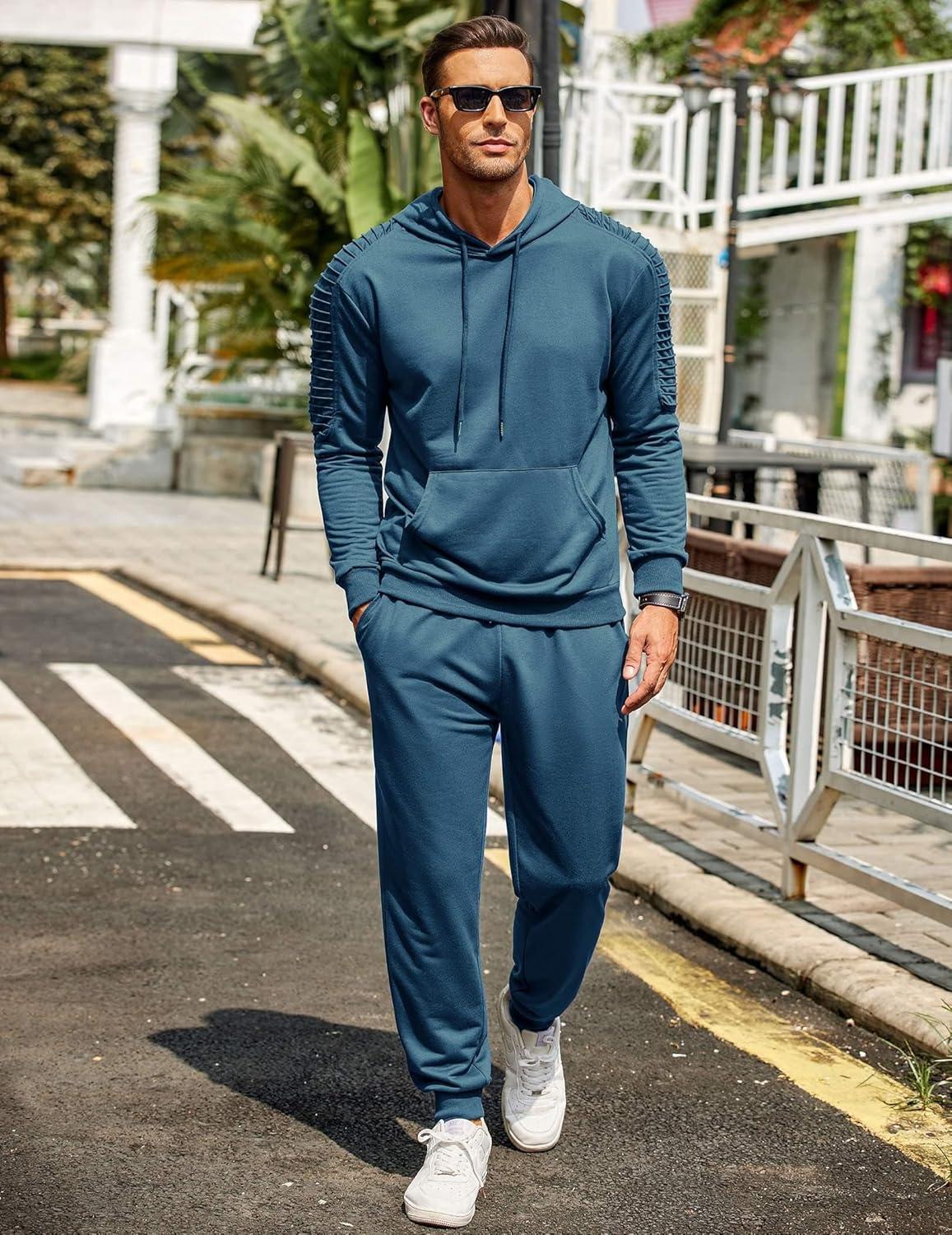 COOFANDY Men’s Tracksuit 2 Piece Hoodie Sweatsuit Sets Casual Jogging Athletic Suits(Blue)