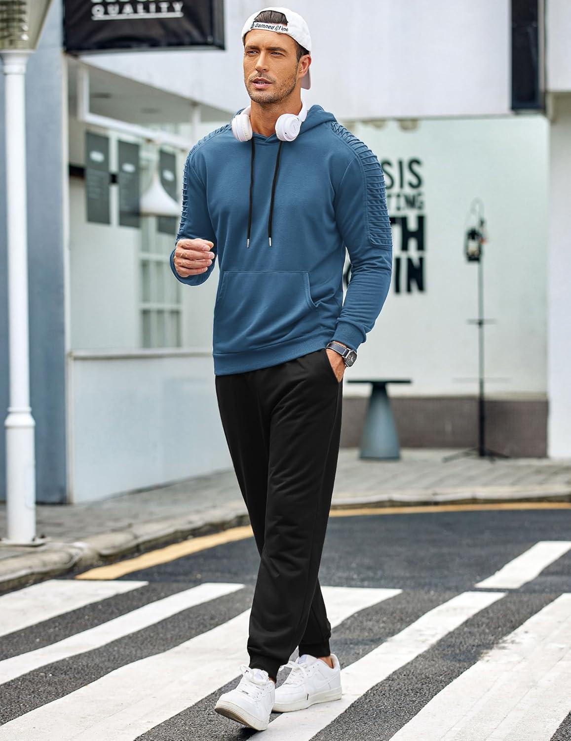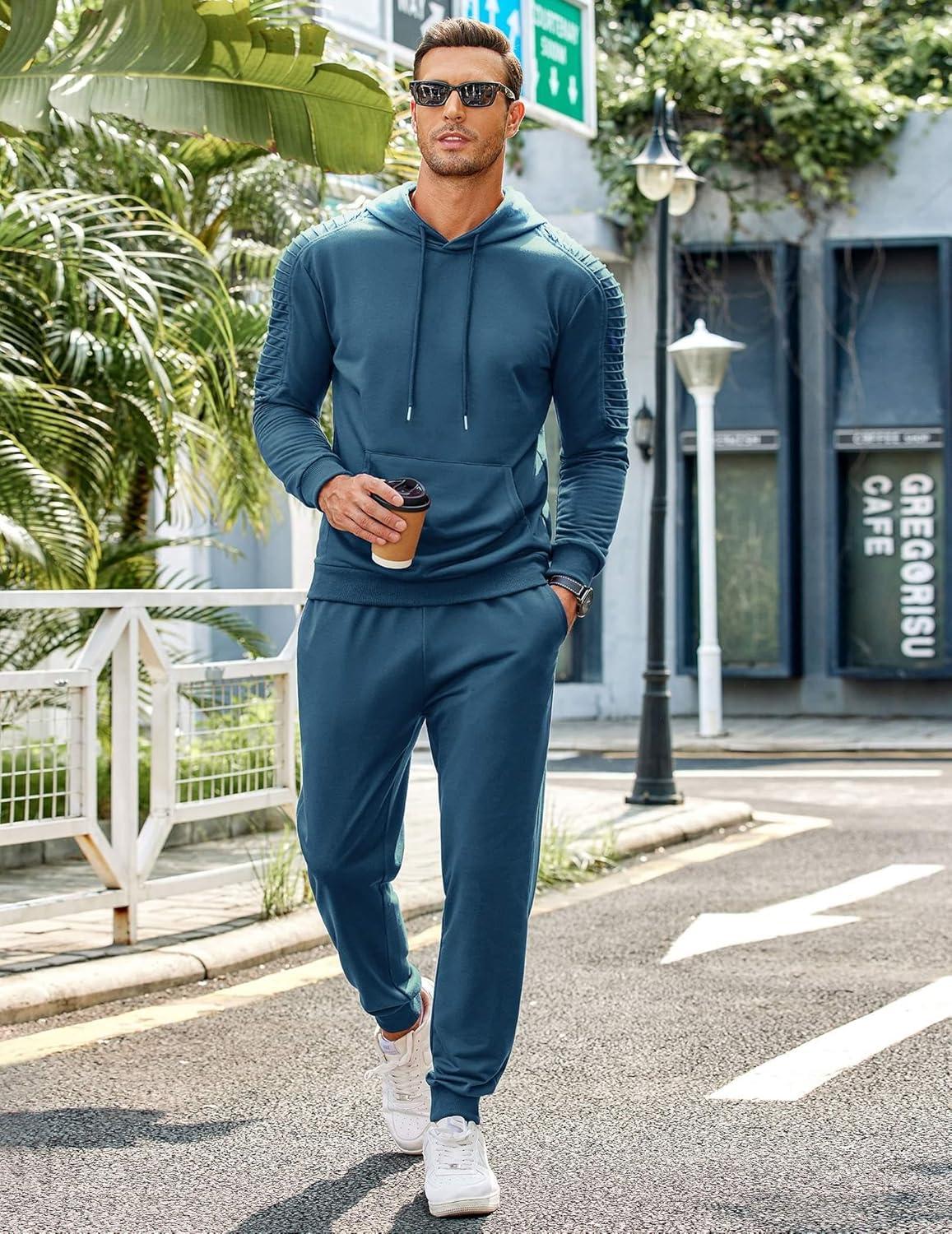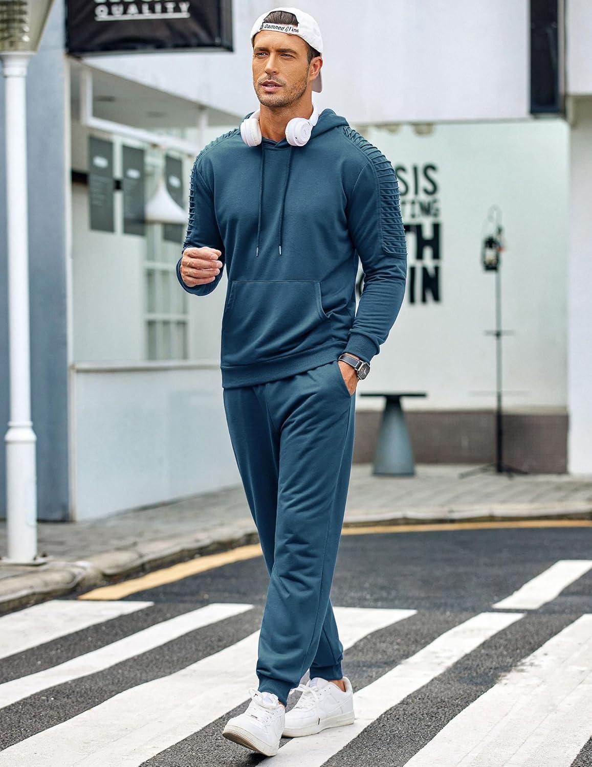 COOFANDY Men’s Tracksuit 2 Piece Hoodie Sweatsuit Sets Casual Jogging Athletic Suits(Blue Grey)