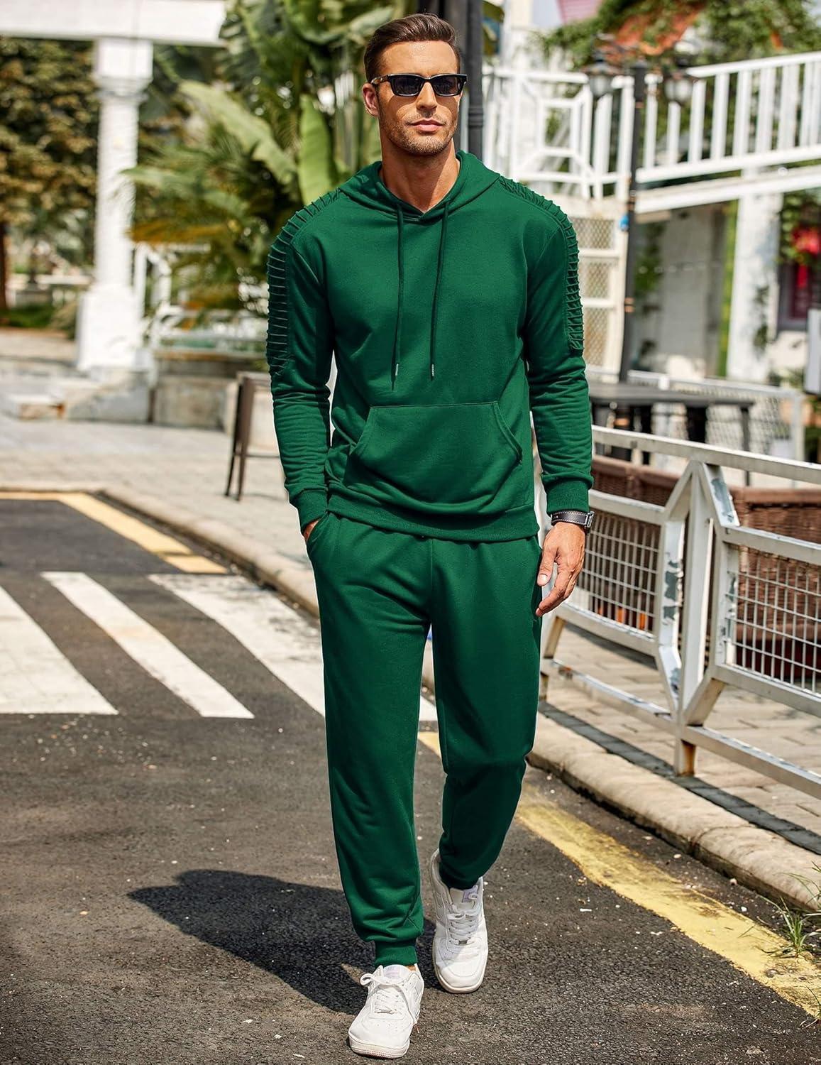 COOFANDY Men’s Tracksuit 2 Piece Hoodie Sweatsuit Sets Casual Jogging Athletic Suits(Dark Green)