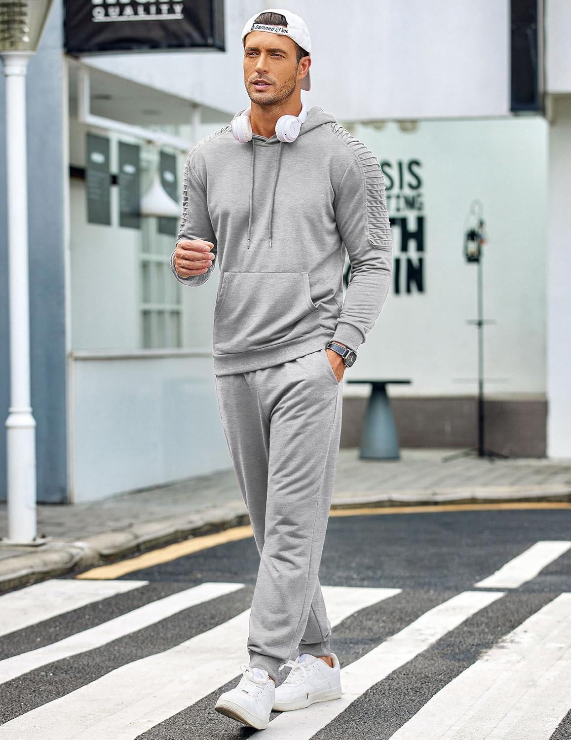 COOFANDY Men’s Tracksuit 2 Piece Hoodie Sweatsuit Sets Casual Jogging Athletic Suits(Light Grey)