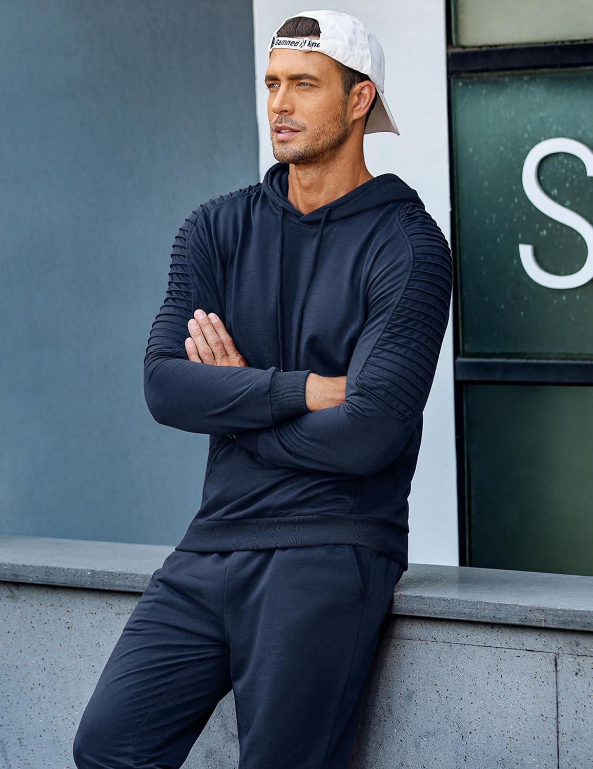 COOFANDY Men’s Tracksuit 2 Piece Hoodie Sweatsuit Sets Casual Jogging Athletic Suits(Navy Blue)