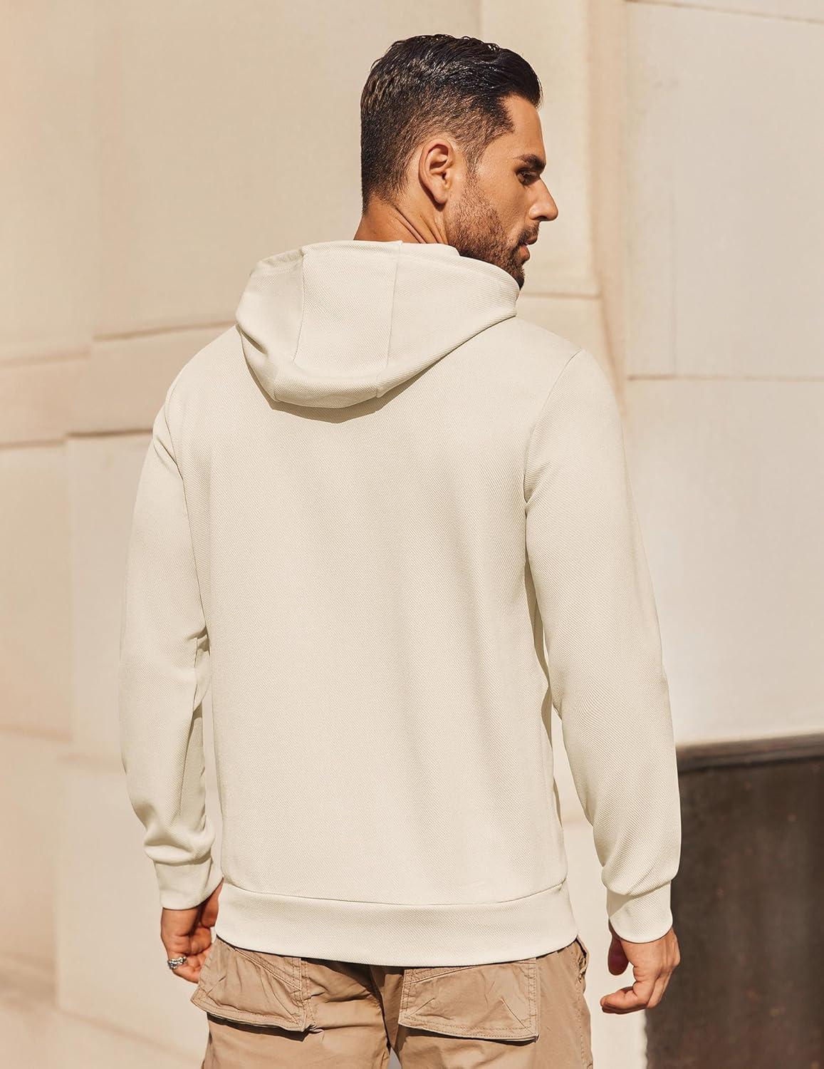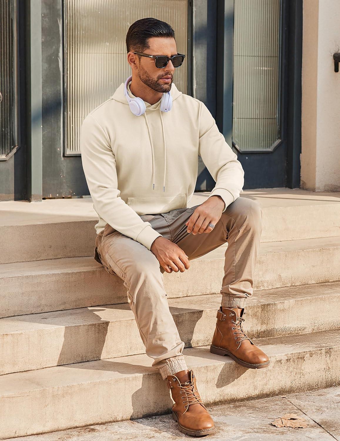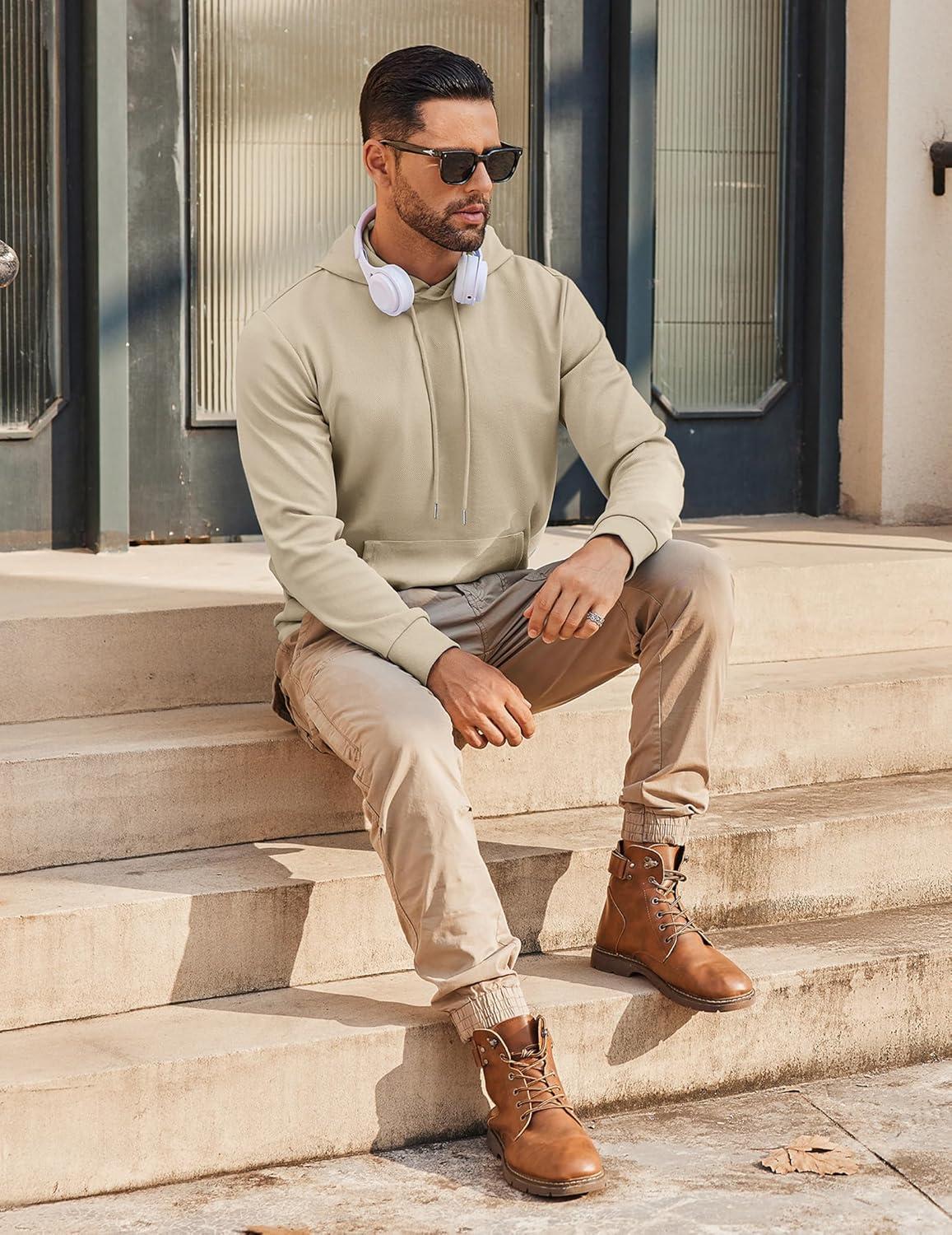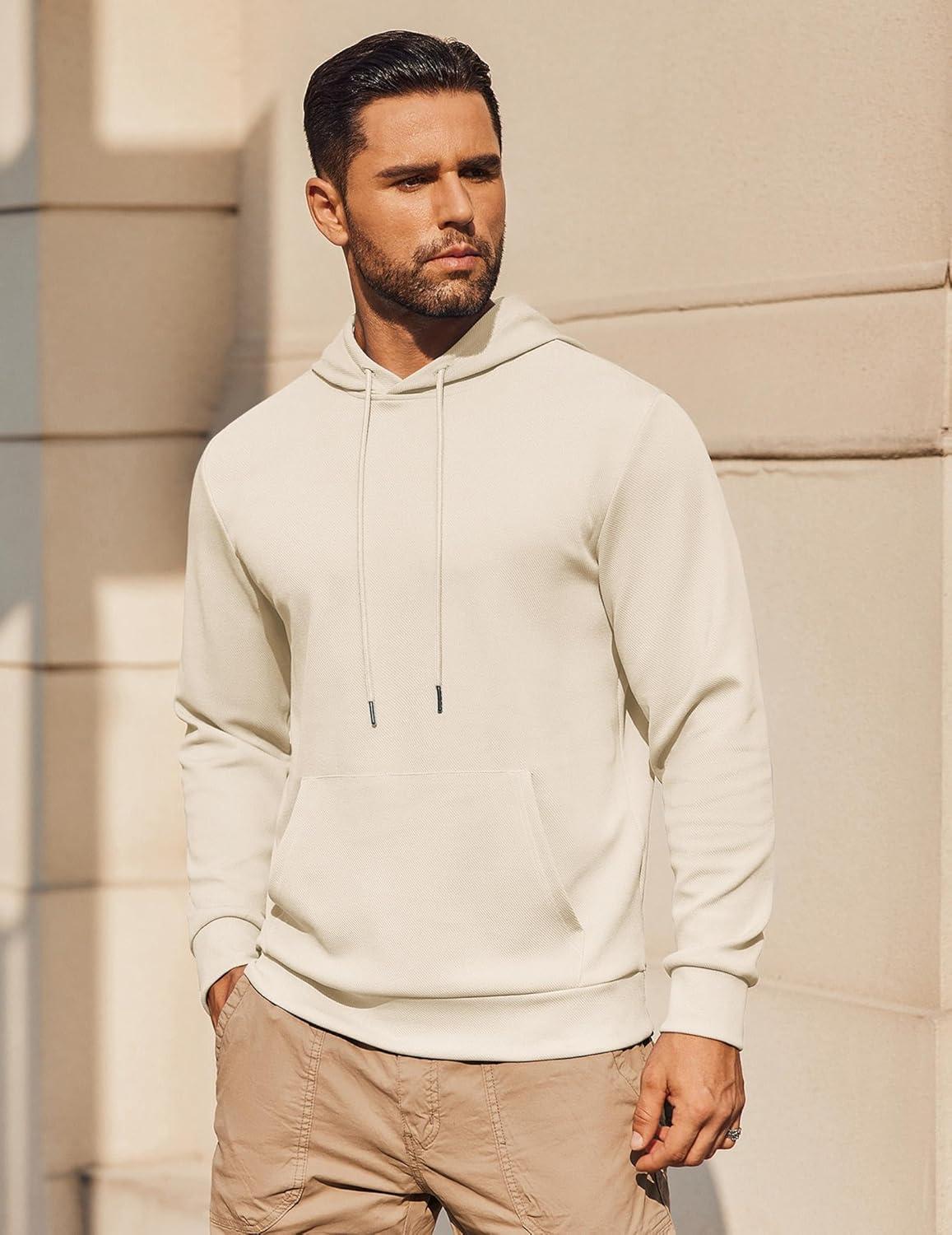 COOFANDY Mens Hoodie Long Sleeve Casual Pullover Hooded Sweatshirt Fashion Drawstring Hoodies with Pocket(Beige)