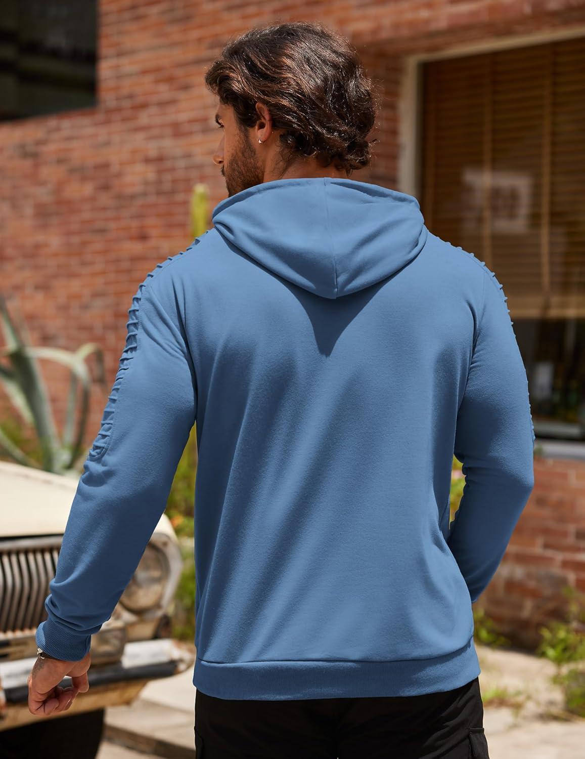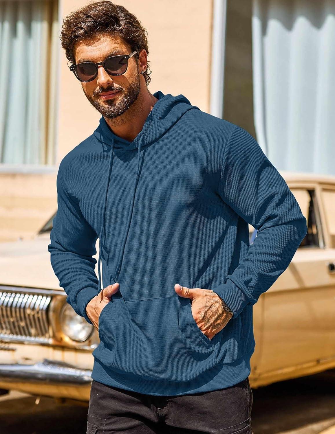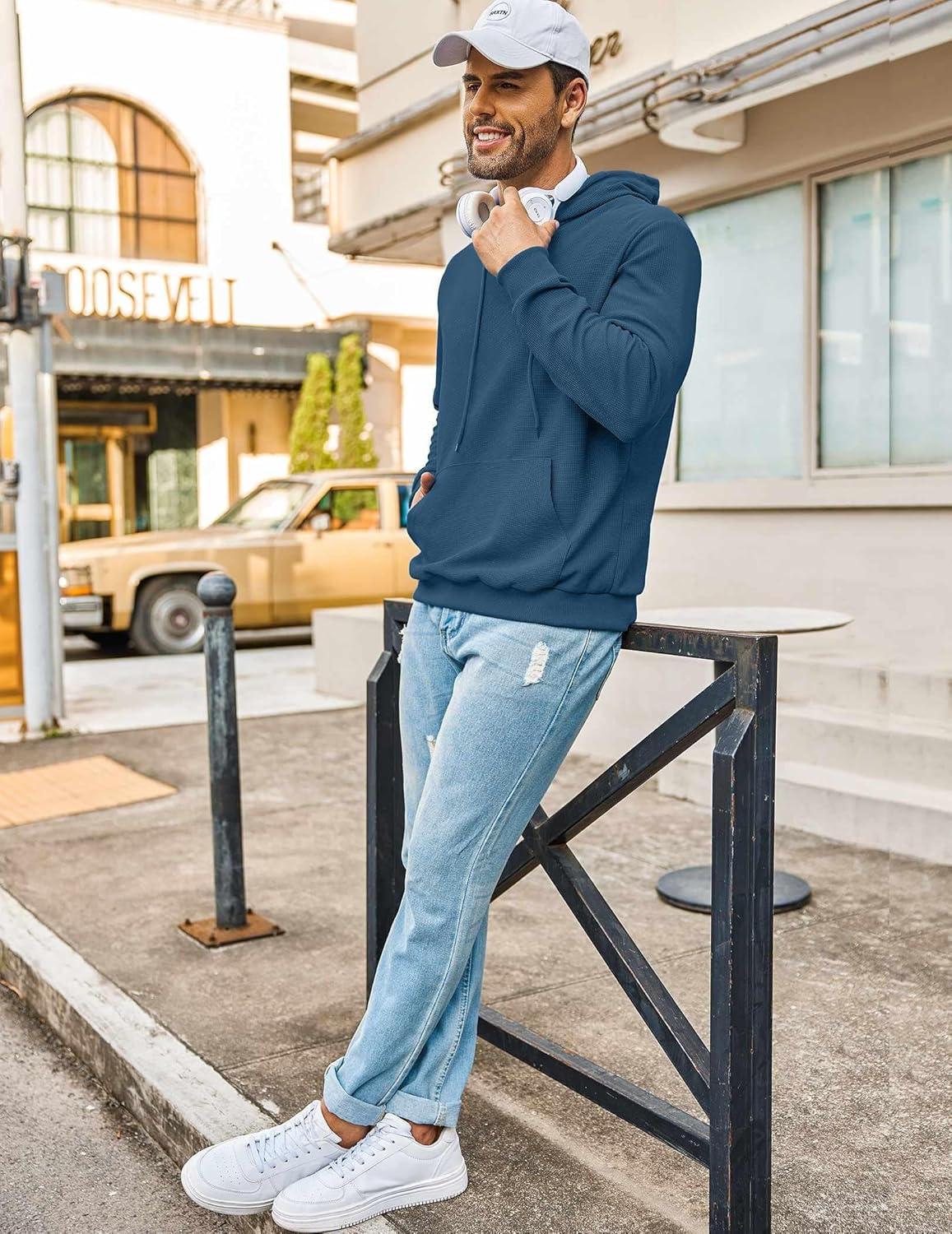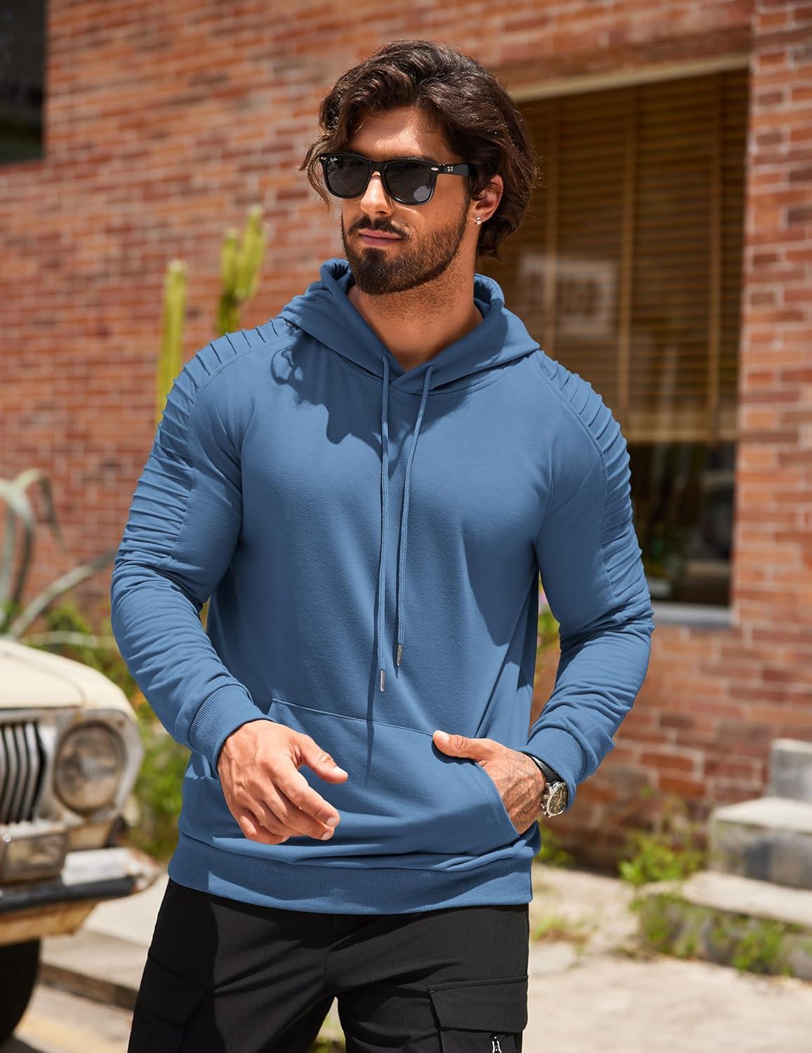 COOFANDY Mens Hoodie Long Sleeve Casual Pullover Hooded Sweatshirt Fashion Drawstring Hoodies with Pocket(Denim Blue)