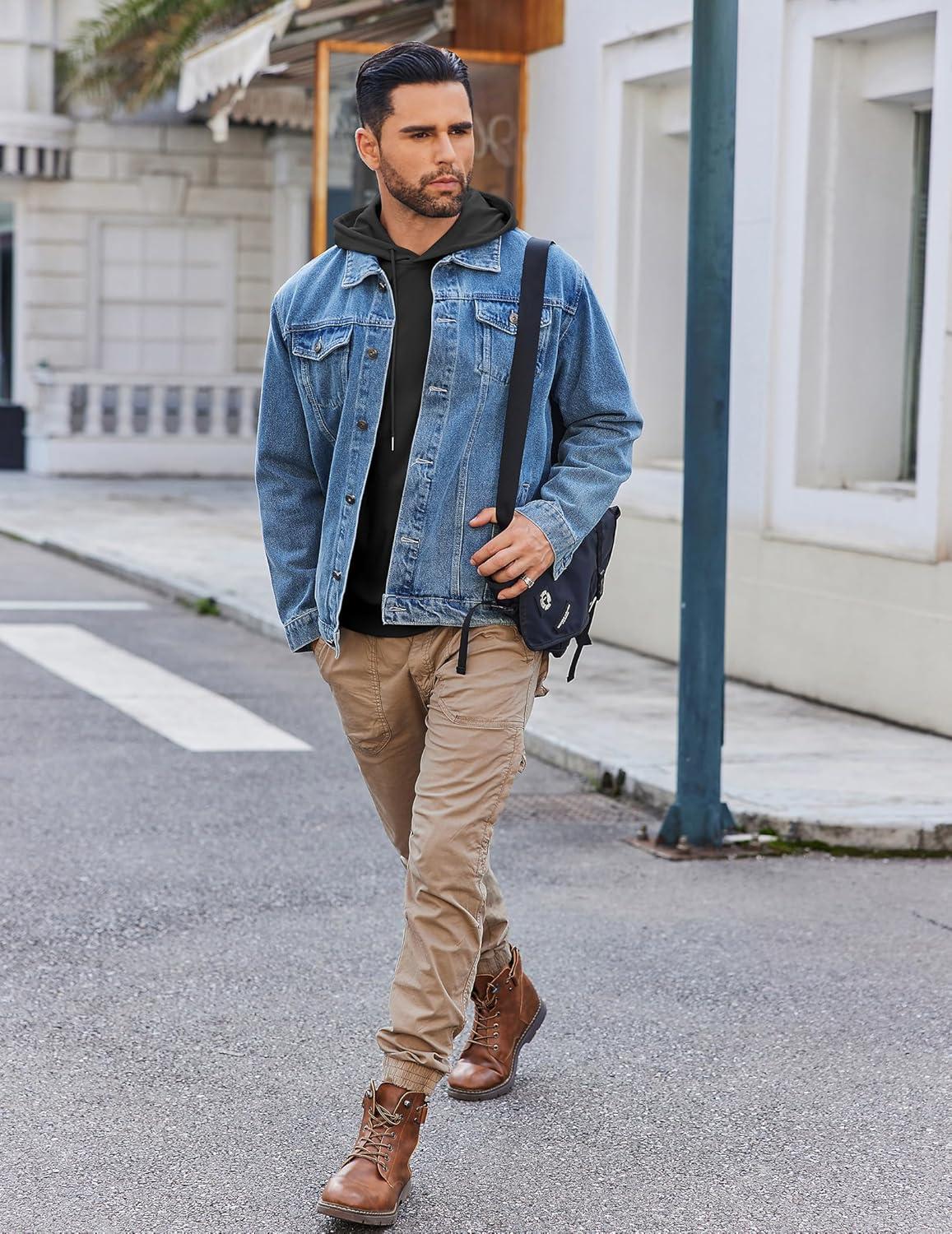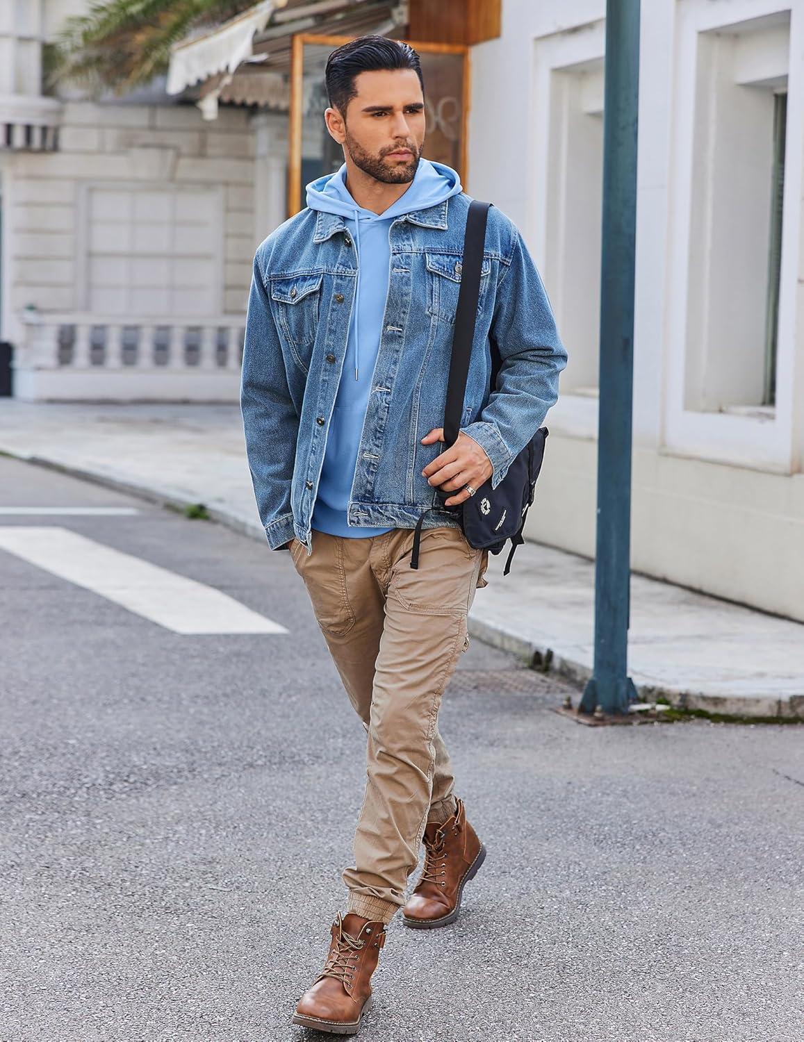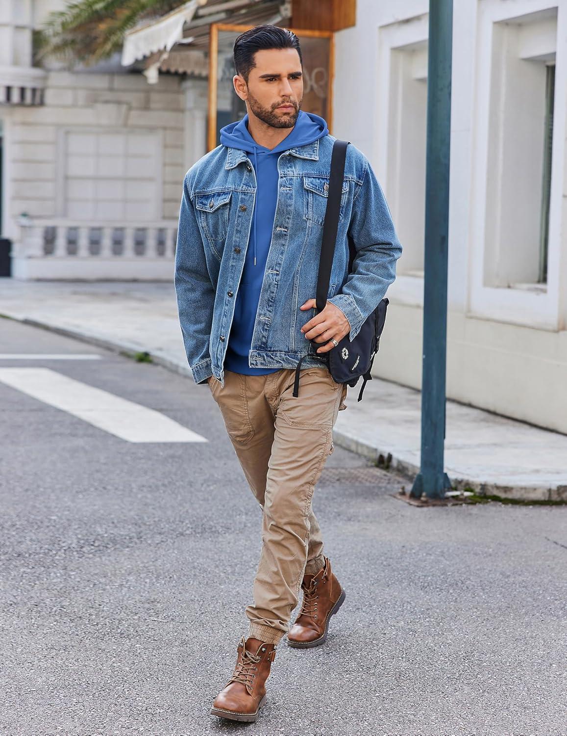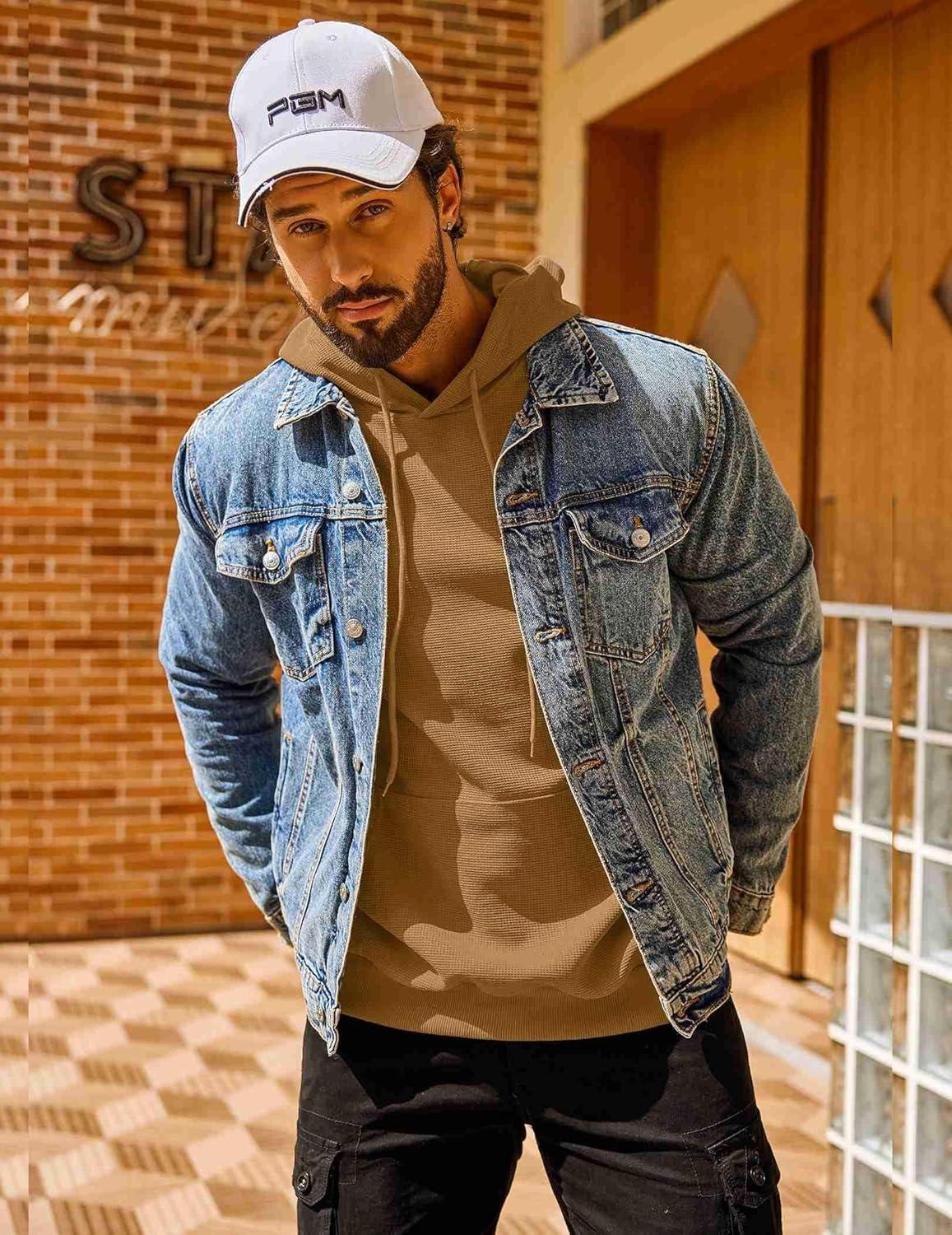 COOFANDY Mens Hoodie Long Sleeve Casual Pullover Hooded Sweatshirt Fashion Drawstring Hoodies with Pocket(Denim Blue)