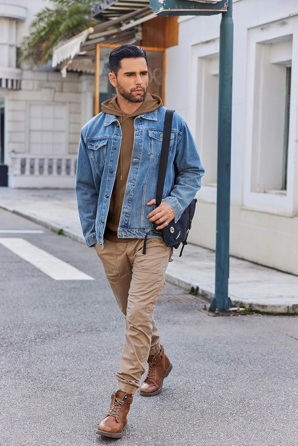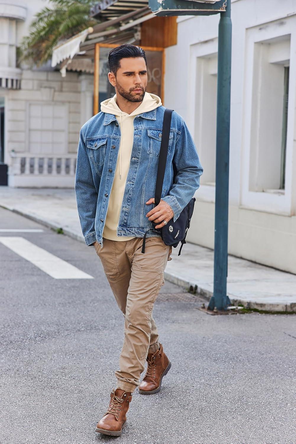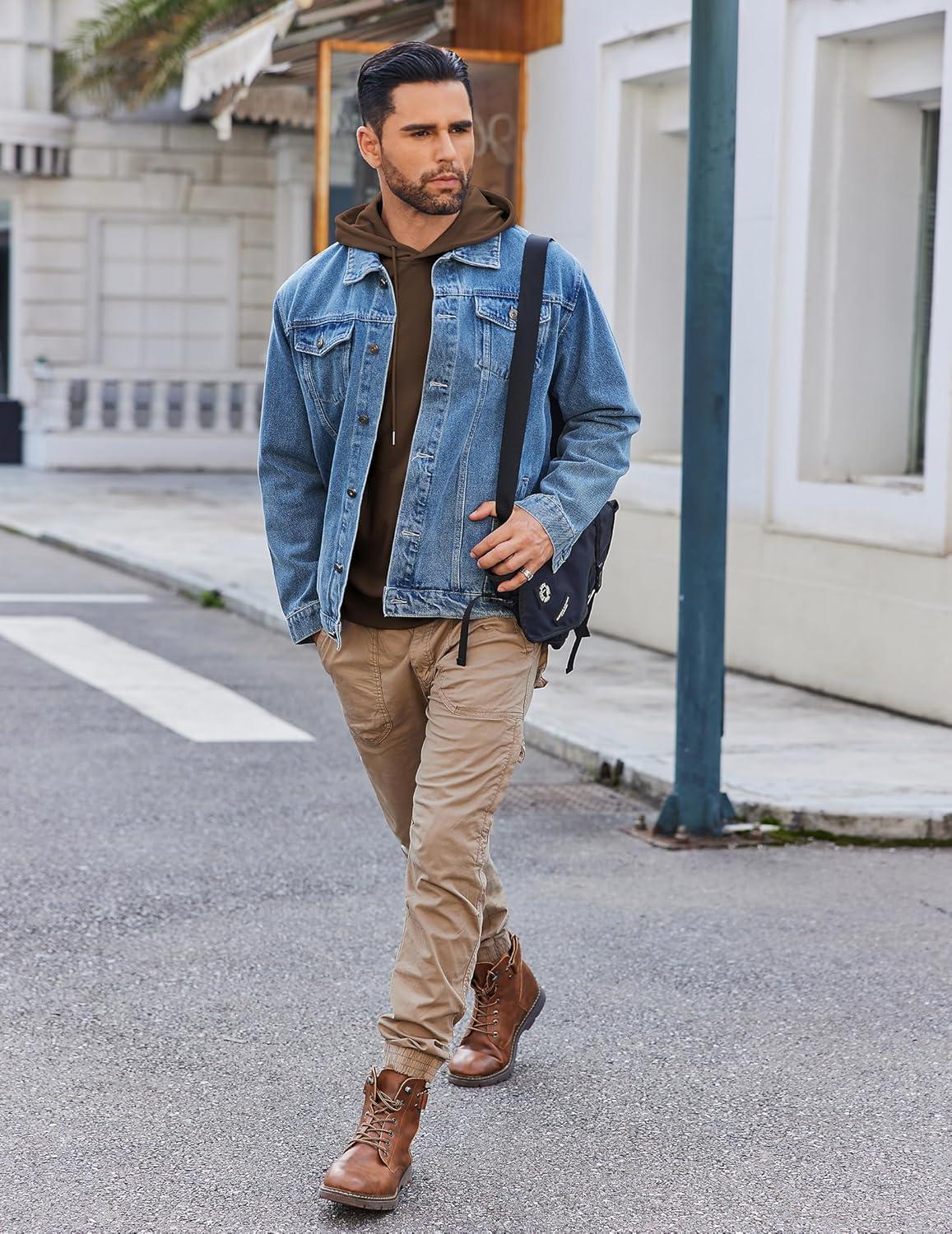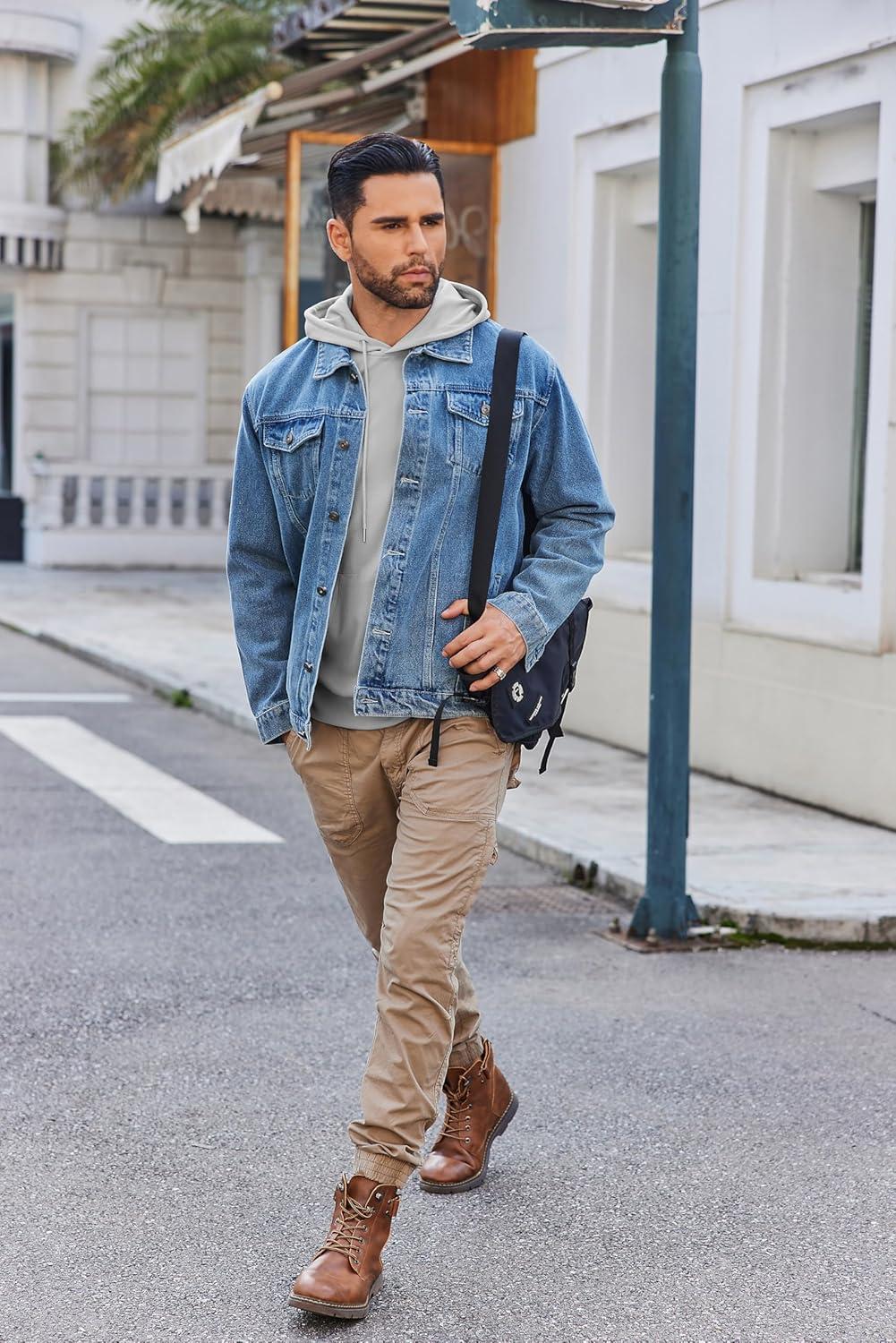 COOFANDY Mens Hoodie Long Sleeve Casual Pullover Hooded Sweatshirt Fashion Drawstring Hoodies with Pocket(Denim Blue)