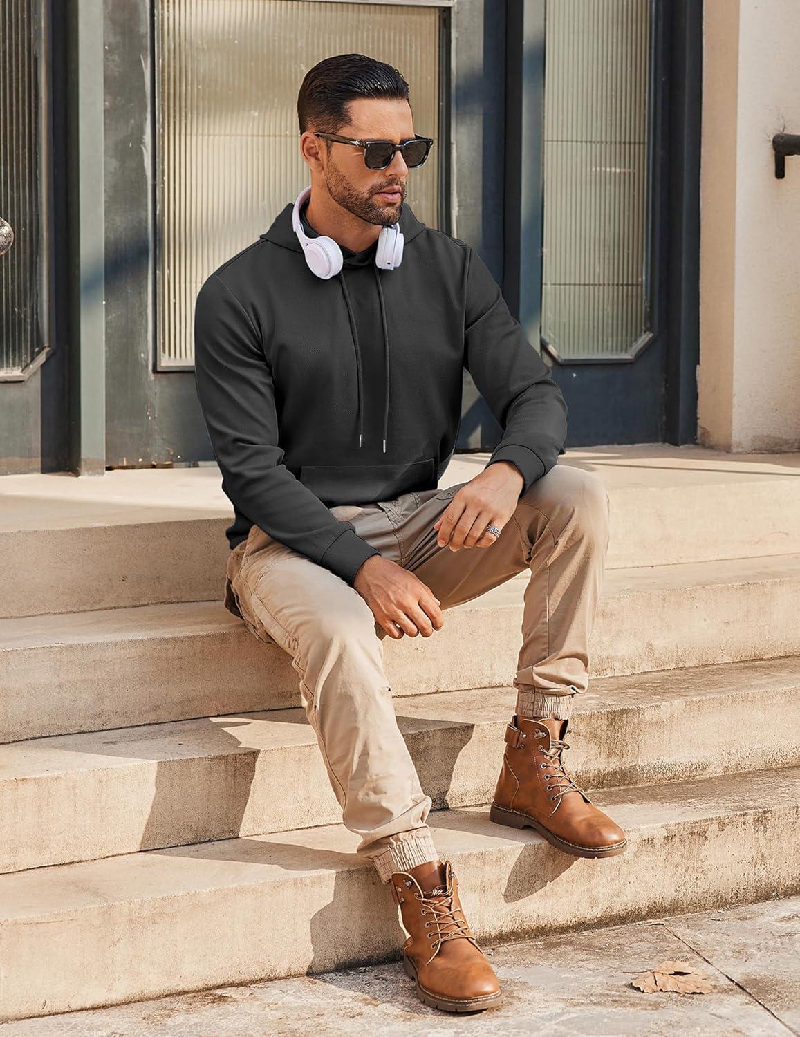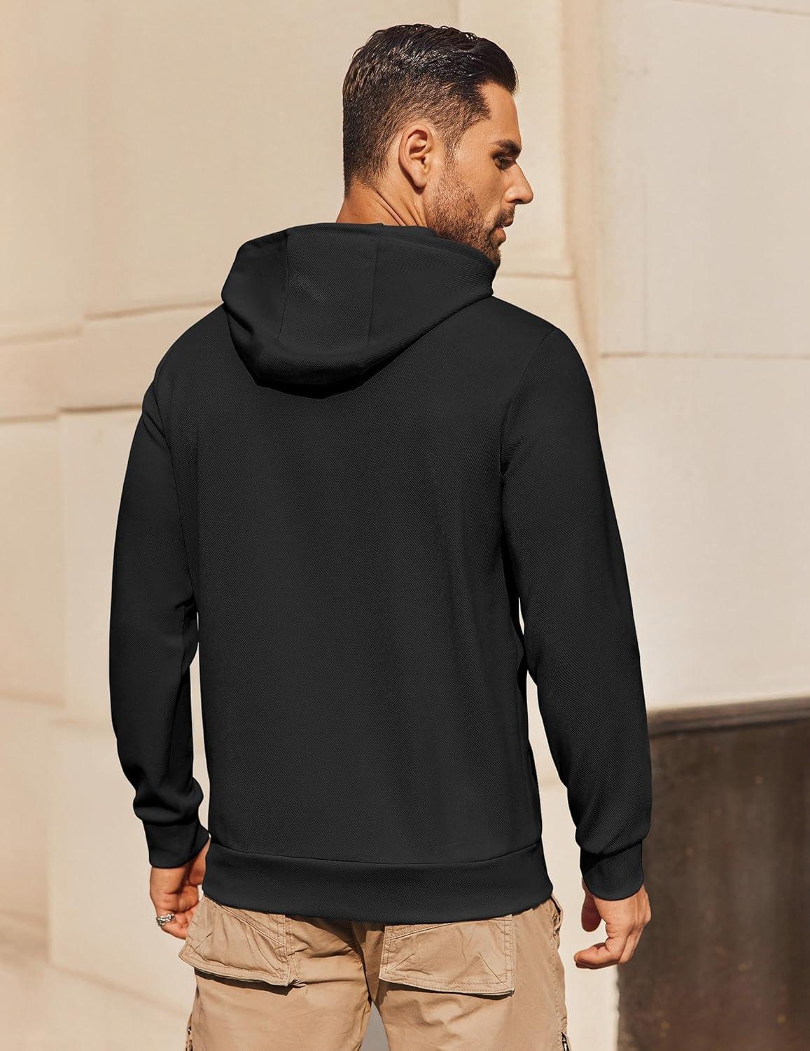 COOFANDY Mens Hoodie Long Sleeve Casual Pullover Hooded Sweatshirt Fashion Drawstring Hoodies with Pocket(Black)