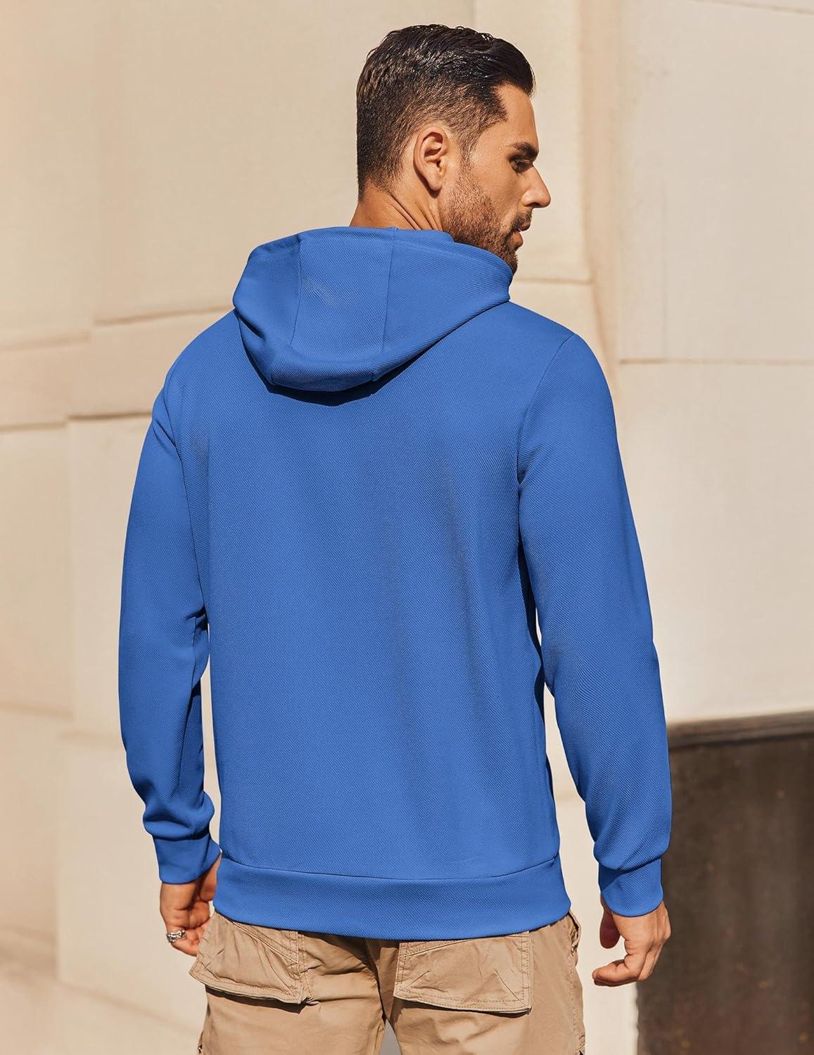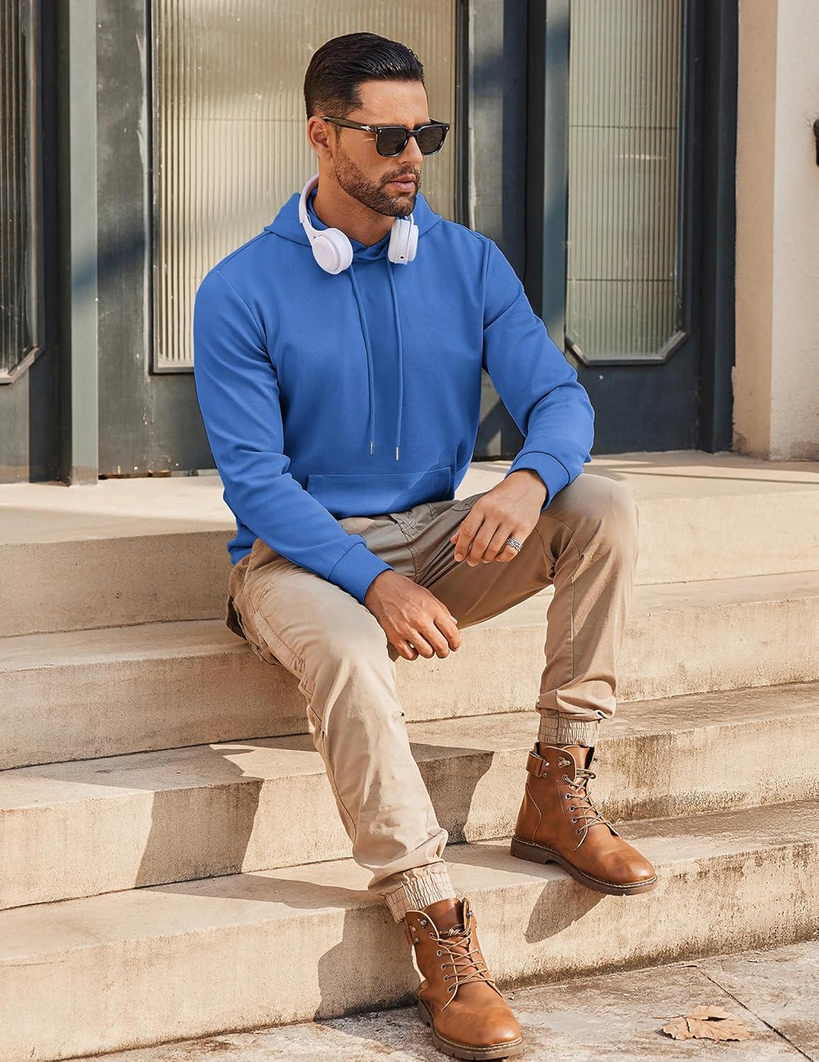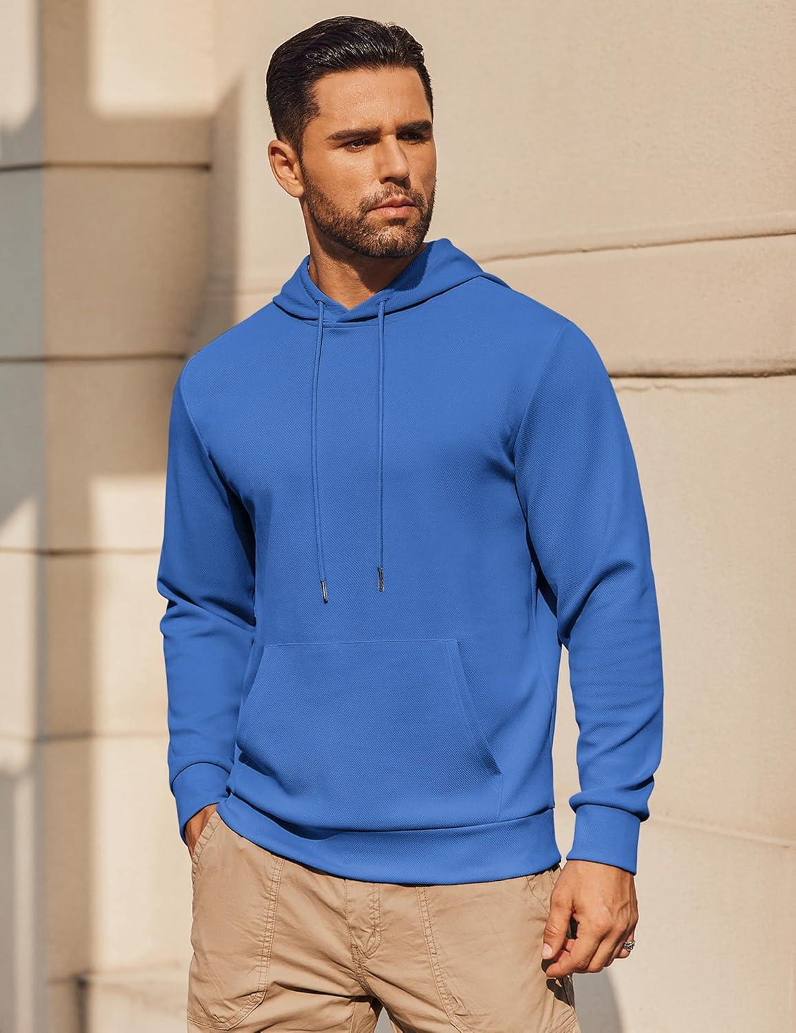 COOFANDY Mens Hoodie Long Sleeve Casual Pullover Hooded Sweatshirt Fashion Drawstring Hoodies with Pocket(Blue)