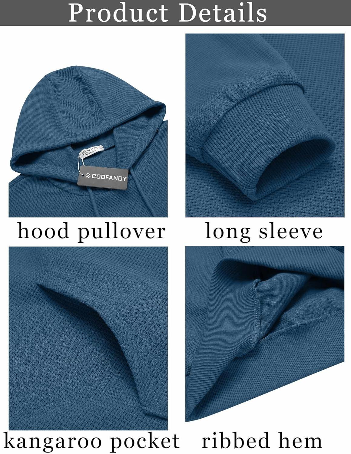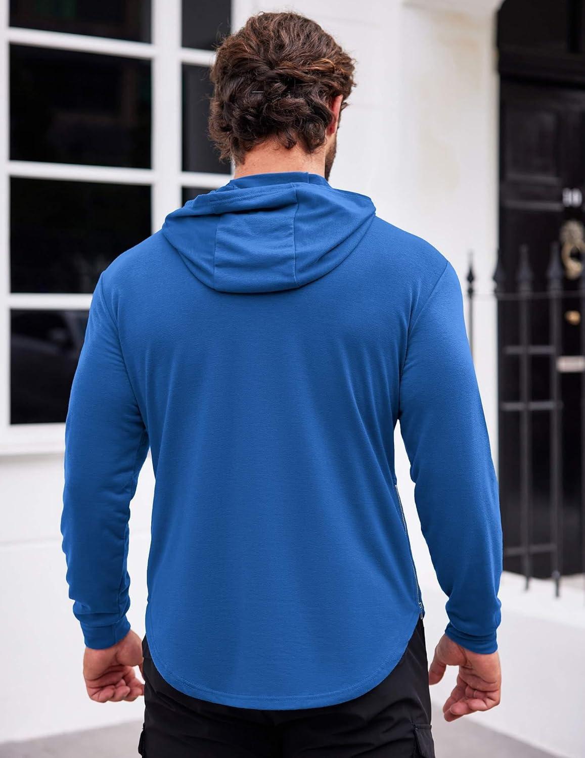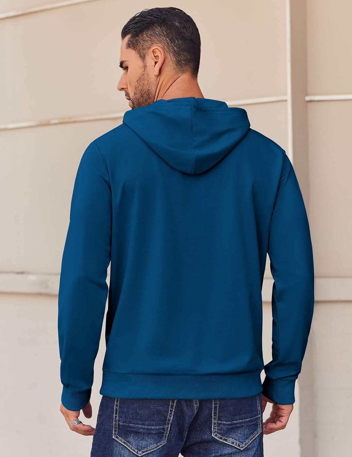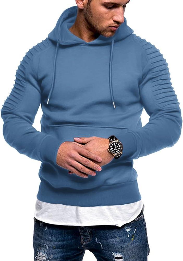 COOFANDY Mens Hoodie Long Sleeve Casual Pullover Hooded Sweatshirt Fashion Drawstring Hoodies with Pocket(Blue)