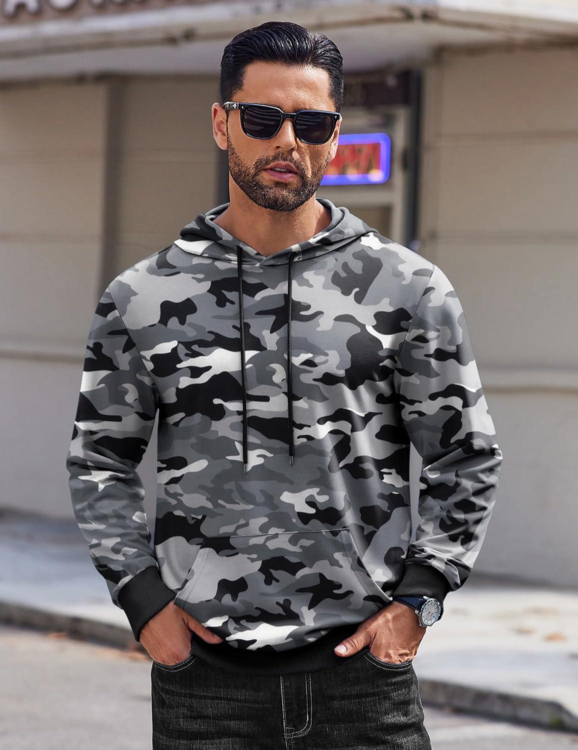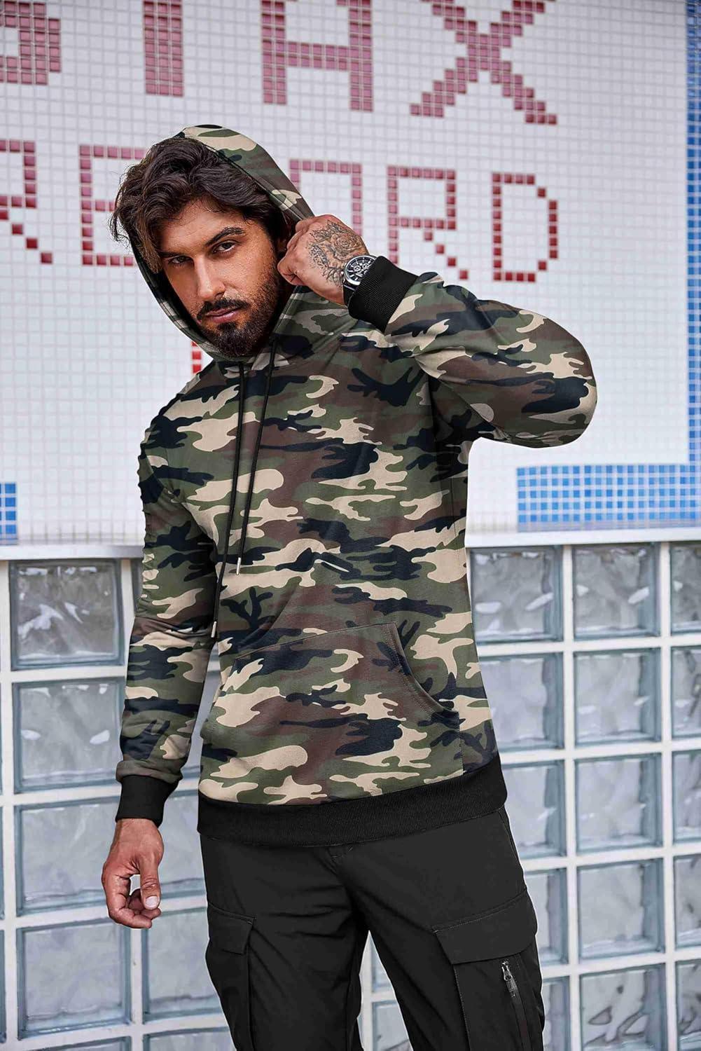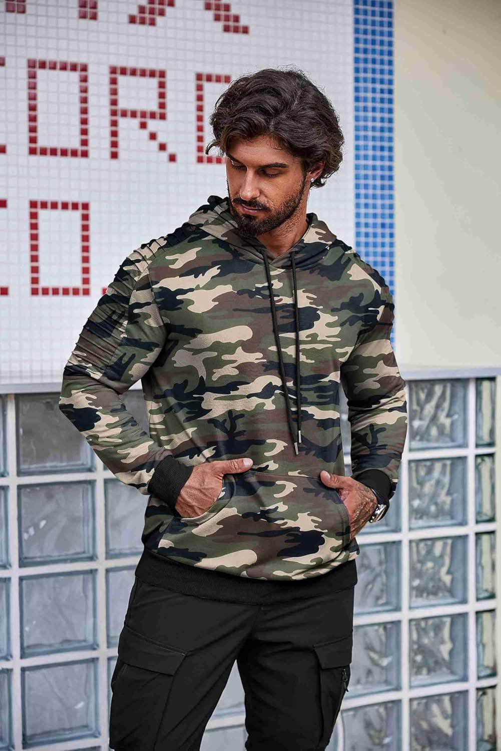 COOFANDY Mens Hoodie Long Sleeve Casual Pullover Hooded Sweatshirt Fashion Drawstring Hoodies with Pocket(Camo)