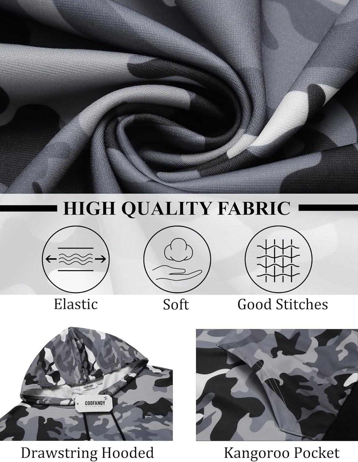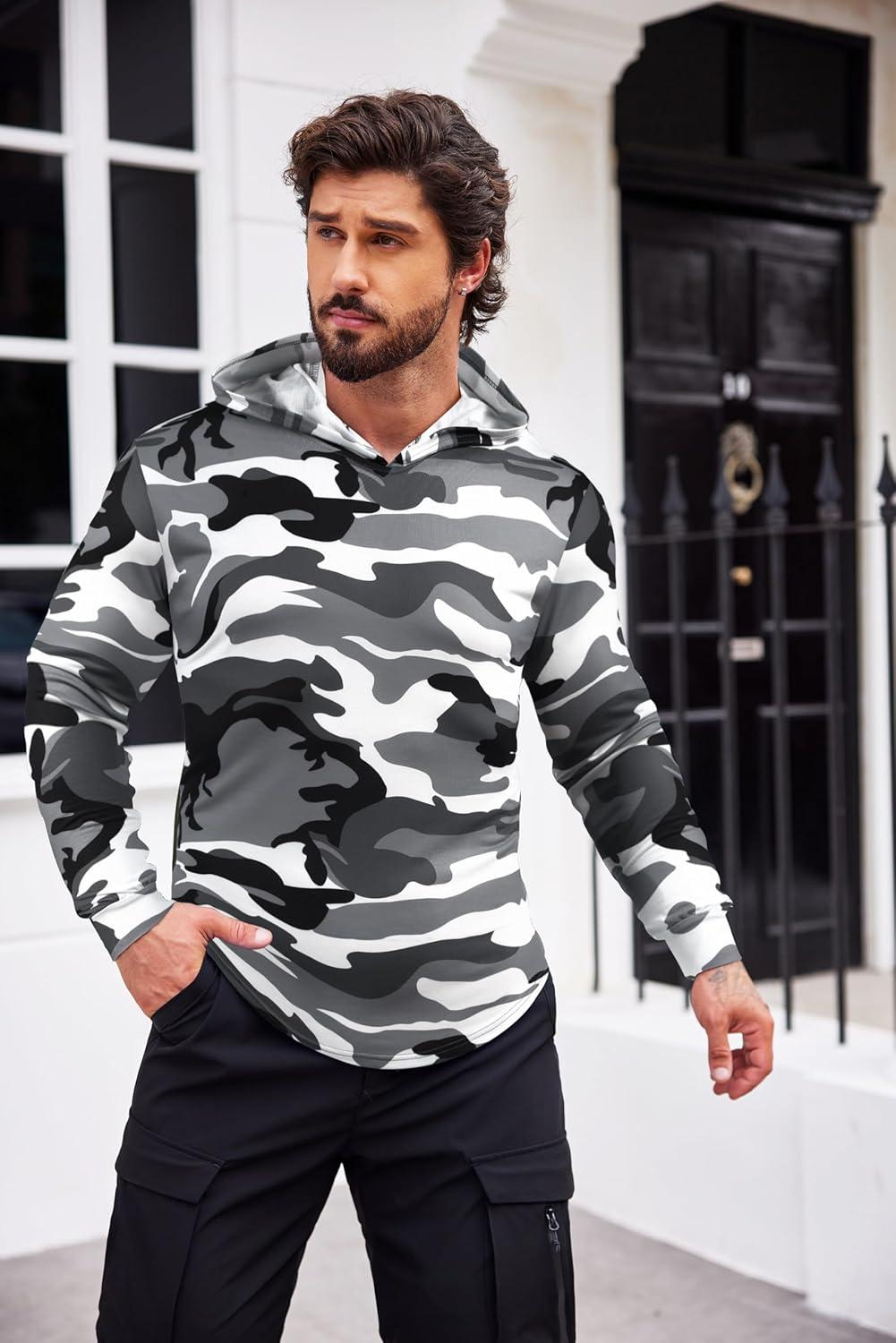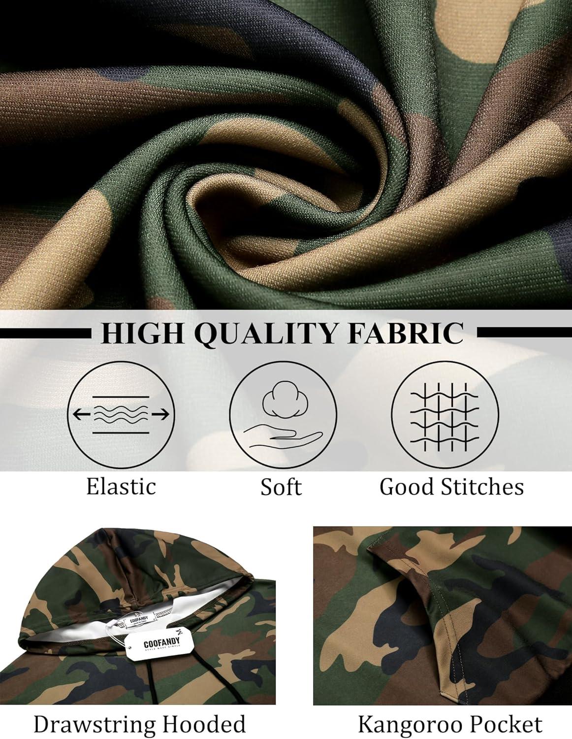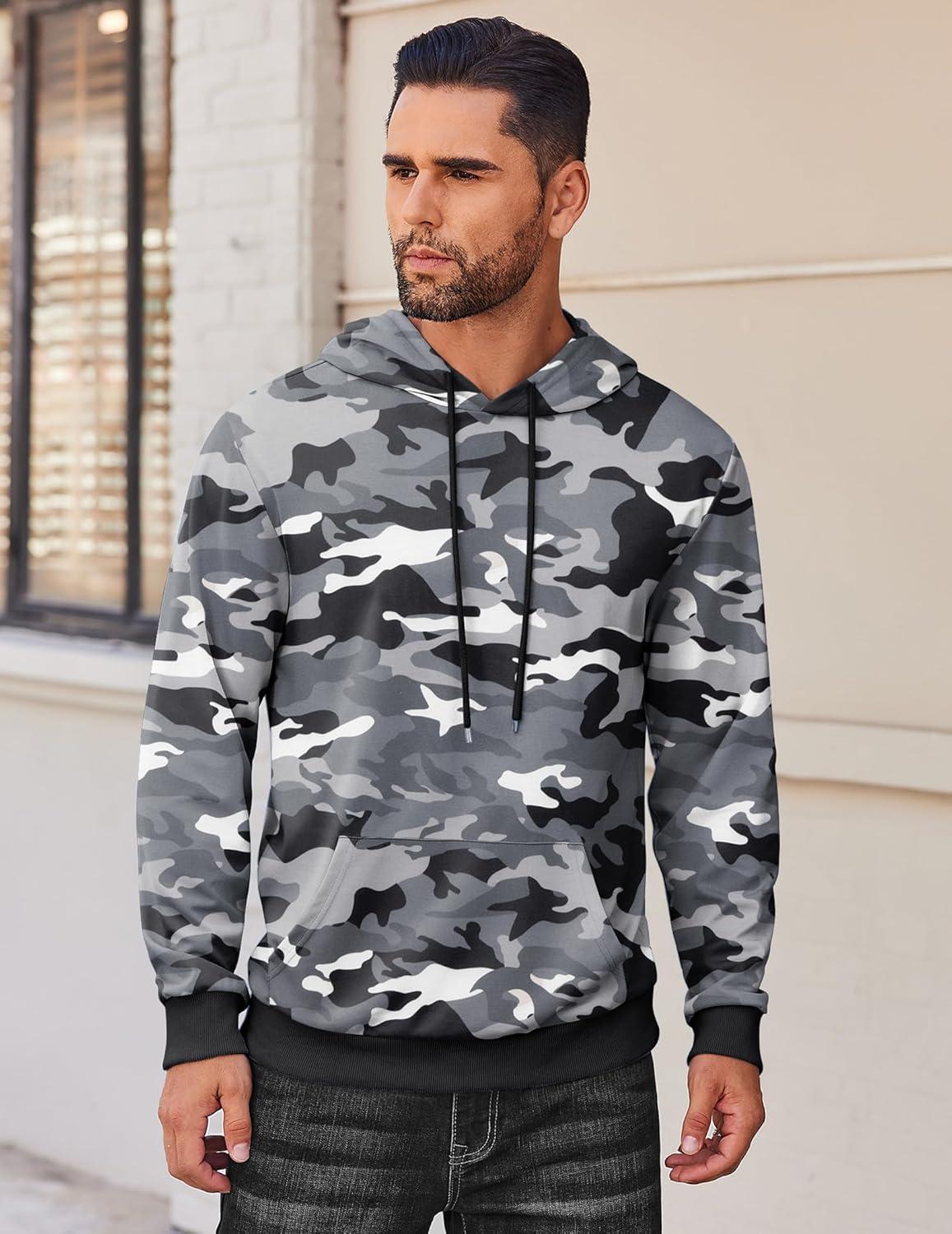 COOFANDY Mens Hoodie Long Sleeve Casual Pullover Hooded Sweatshirt Fashion Drawstring Hoodies with Pocket(Camo)