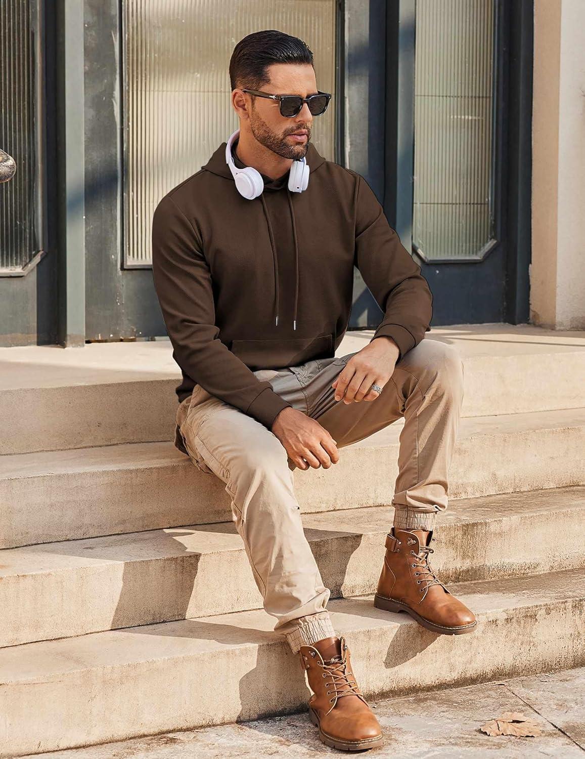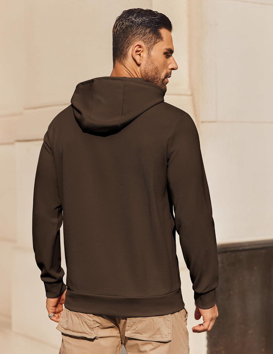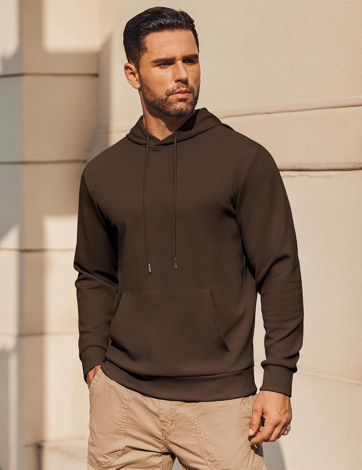 COOFANDY Mens Hoodie Long Sleeve Casual Pullover Hooded Sweatshirt Fashion Drawstring Hoodies with Pocket(Brown)