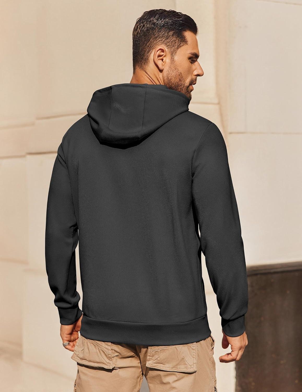 COOFANDY Mens Hoodie Long Sleeve Casual Pullover Hooded Sweatshirt Fashion Drawstring Hoodies with Pocket(Dark Grey)