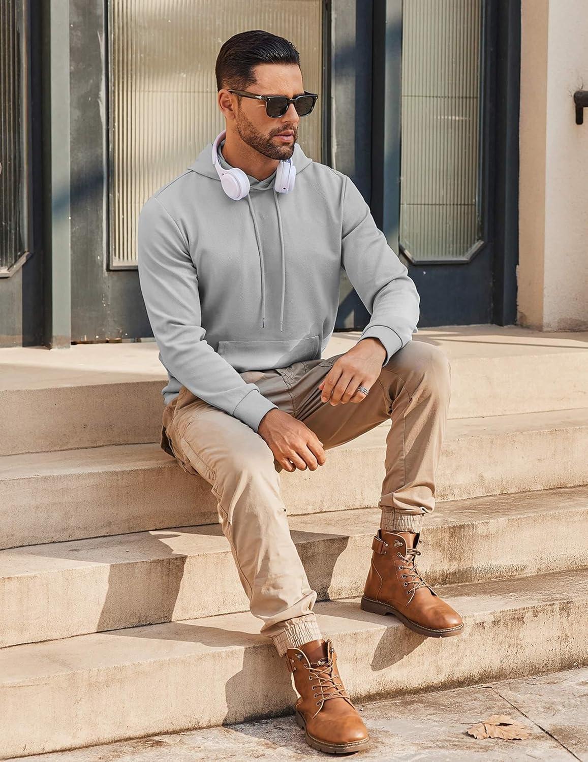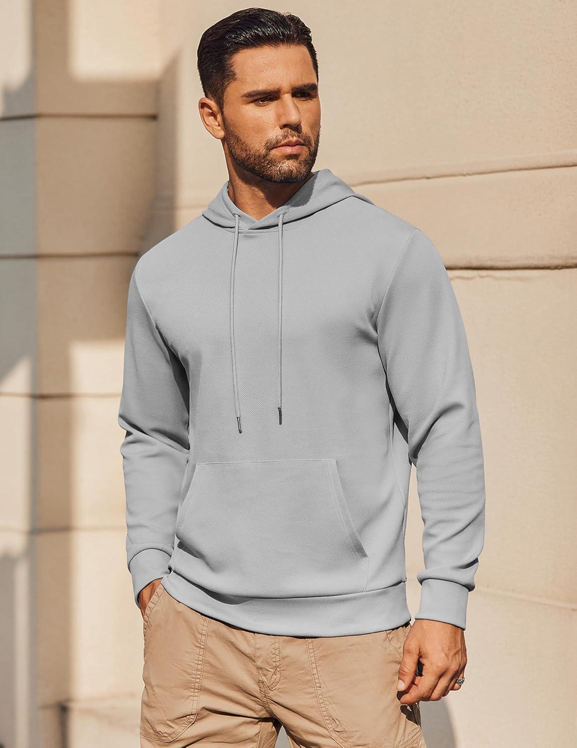 COOFANDY Mens Hoodie Long Sleeve Casual Pullover Hooded Sweatshirt Fashion Drawstring Hoodies with Pocket(Light Grey)