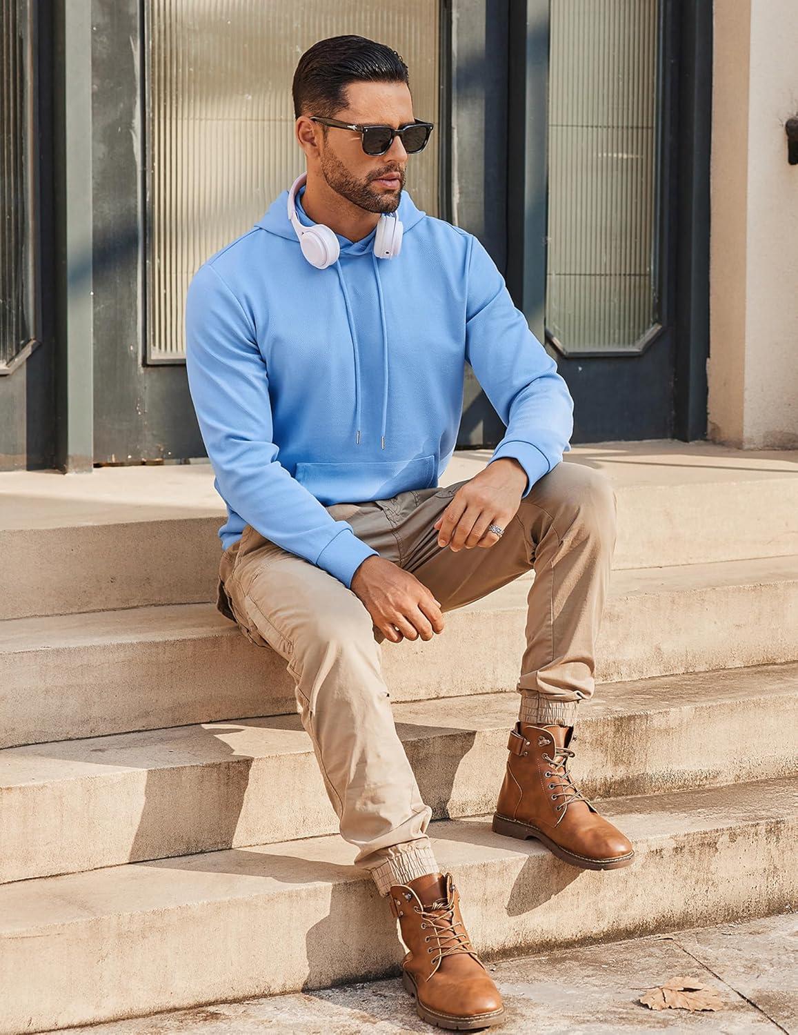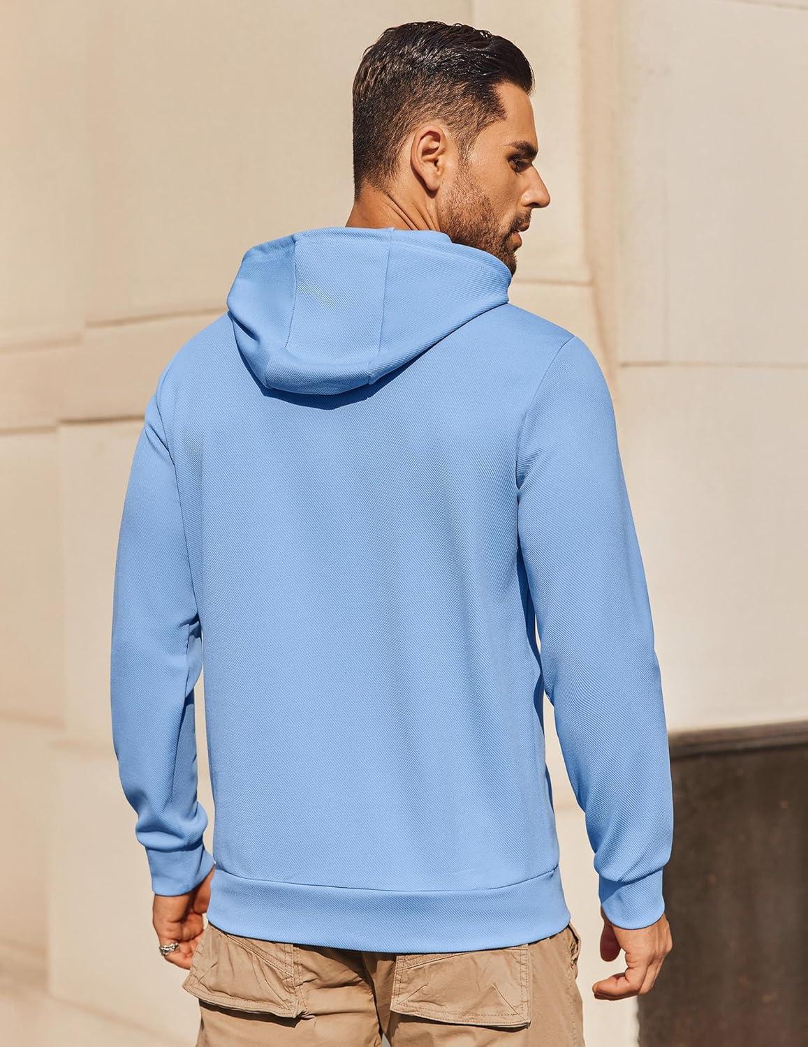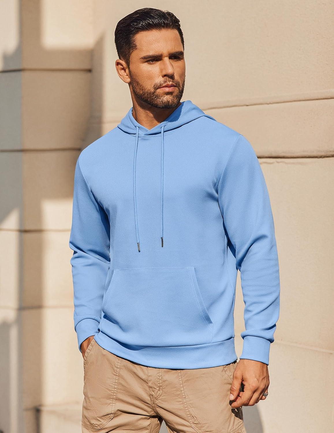 COOFANDY Mens Hoodie Long Sleeve Casual Pullover Hooded Sweatshirt Fashion Drawstring Hoodies with Pocket(Light Blue)