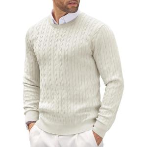 • COOFANDY Men’s Crew Neck Sweater Slim Fit Lightweight Sweatshirts Knitted Pullover for Casual Or Dressy Wear(A-white)