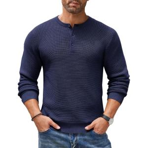 COOFANDY Men’s Henley Knit Sweater Long Sleeve Button Pullover Sweater Casual Waffle Texture Fashion Henley Sweater(Navy Blue)