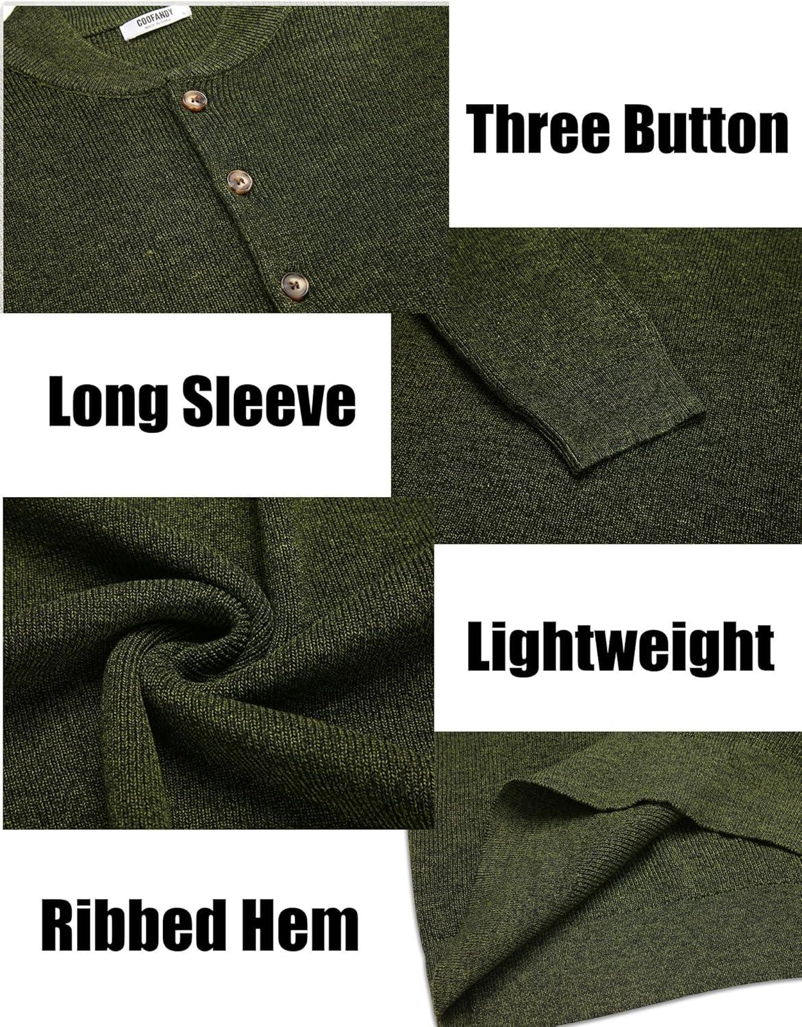 COOFANDY Men Henley Knit Sweater Dress Long Sleeve Button Pullover Sweater Casual Sweater Lightweight Slim Fit Tops(Army Green/Black)