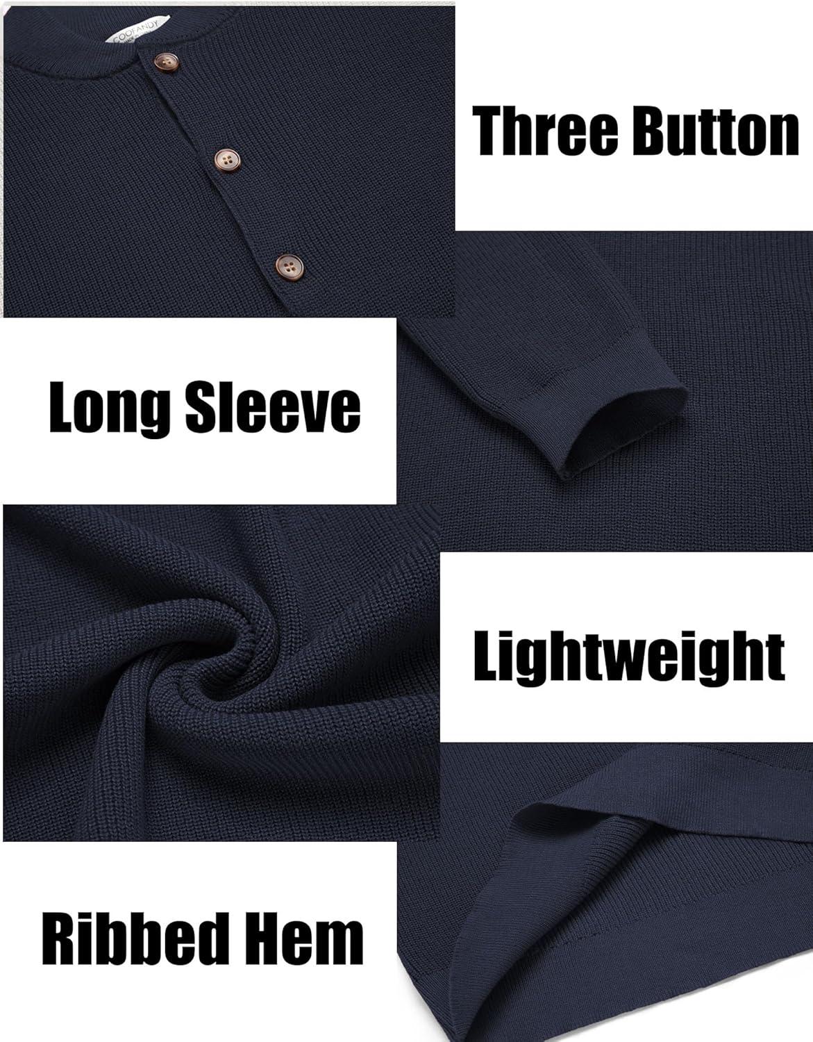 COOFANDY Men Henley Knit Sweater Dress Long Sleeve Button Pullover Sweater Casual Sweater Lightweight Slim Fit Tops(Navy Blue)