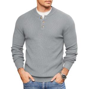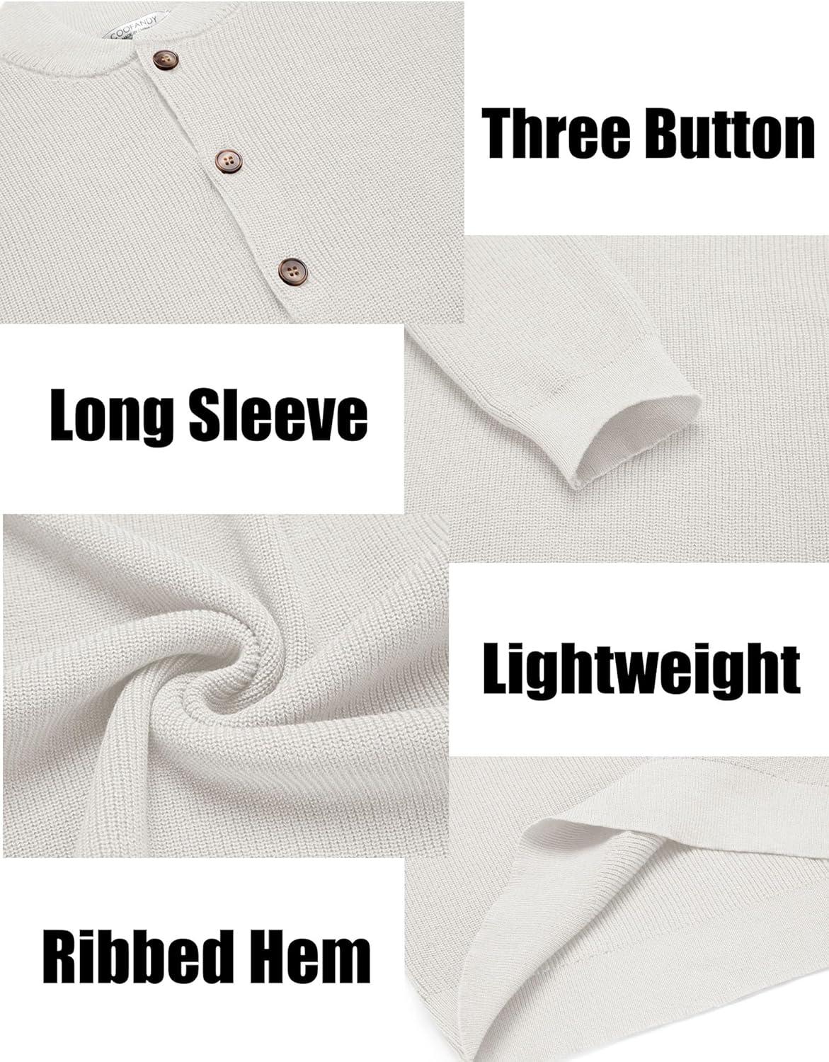 COOFANDY Men Henley Knit Sweater Dress Long Sleeve Button Pullover Sweater Casual Sweater Lightweight Slim Fit Tops(Light Grey)