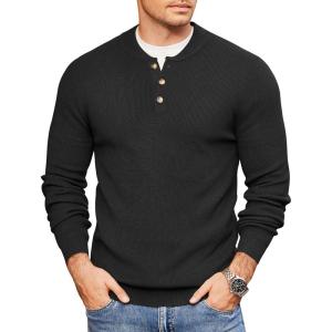 COOFANDY Men Henley Knit Sweater Dress Long Sleeve Button Pullover Sweater Casual Sweater Lightweight Slim Fit Tops(Black)