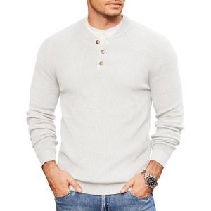 COOFANDY Men Henley Knit Sweater Dress Long Sleeve Button Pullover Sweater Casual Sweater Lightweight Slim Fit Tops(White)