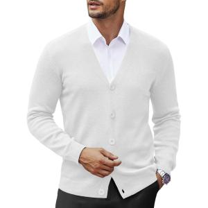 COOFANDY Men’s V Neck Cardigan Sweater Casual Lightweight Button Down Knitted Cardigan Sweater(All White)