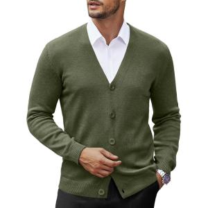 COOFANDY Men’s V Neck Cardigan Sweater Casual Lightweight Button Down Knitted Cardigan Sweater(Army Green)