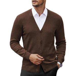 COOFANDY Men’s V Neck Cardigan Sweater Casual Lightweight Button Down Knitted Cardigan Sweater(Brown)