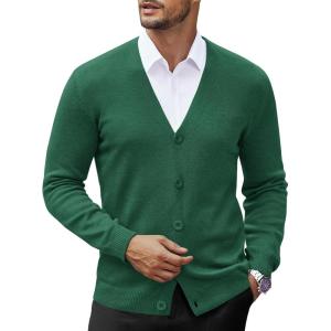 COOFANDY Men’s V Neck Cardigan Sweater Casual Lightweight Button Down Knitted Cardigan Sweater(Green)