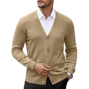 COOFANDY Men’s V Neck Cardigan Sweater Casual Lightweight Button Down Knitted Cardigan Sweater(Khaki)