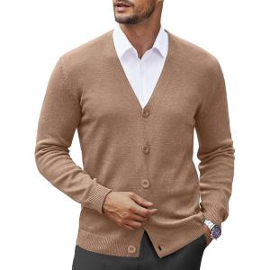 COOFANDY Men’s V Neck Cardigan Sweater Casual Lightweight Button Down Knitted Cardigan Sweater(Light Brown)