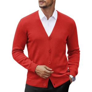 COOFANDY Men’s V Neck Cardigan Sweater Casual Lightweight Button Down Knitted Cardigan Sweater(Red)