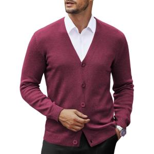 COOFANDY Men’s V Neck Cardigan Sweater Casual Lightweight Button Down Knitted Cardigan Sweater(Wine Red)