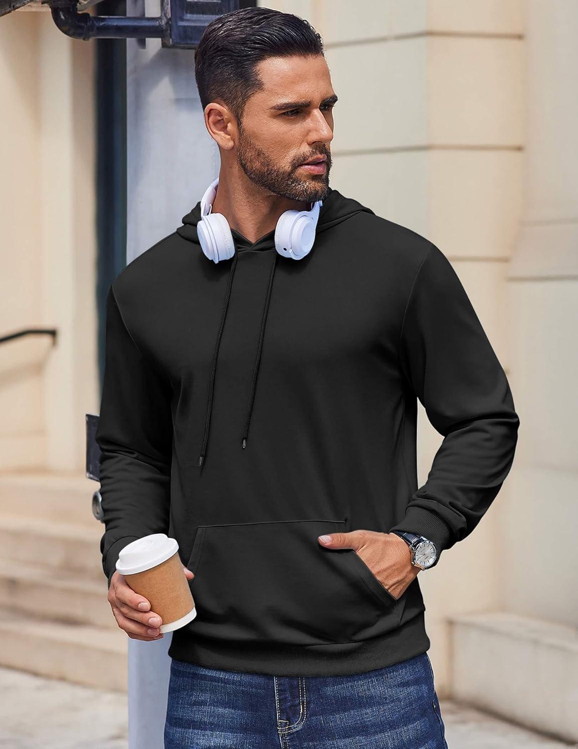 COOFANDY Mens Hoodies Pullover Long Sleeve Casual Fashion Sweatshirts Drawstring Gym Hooded Shirt with Kanga Pocket(Black)