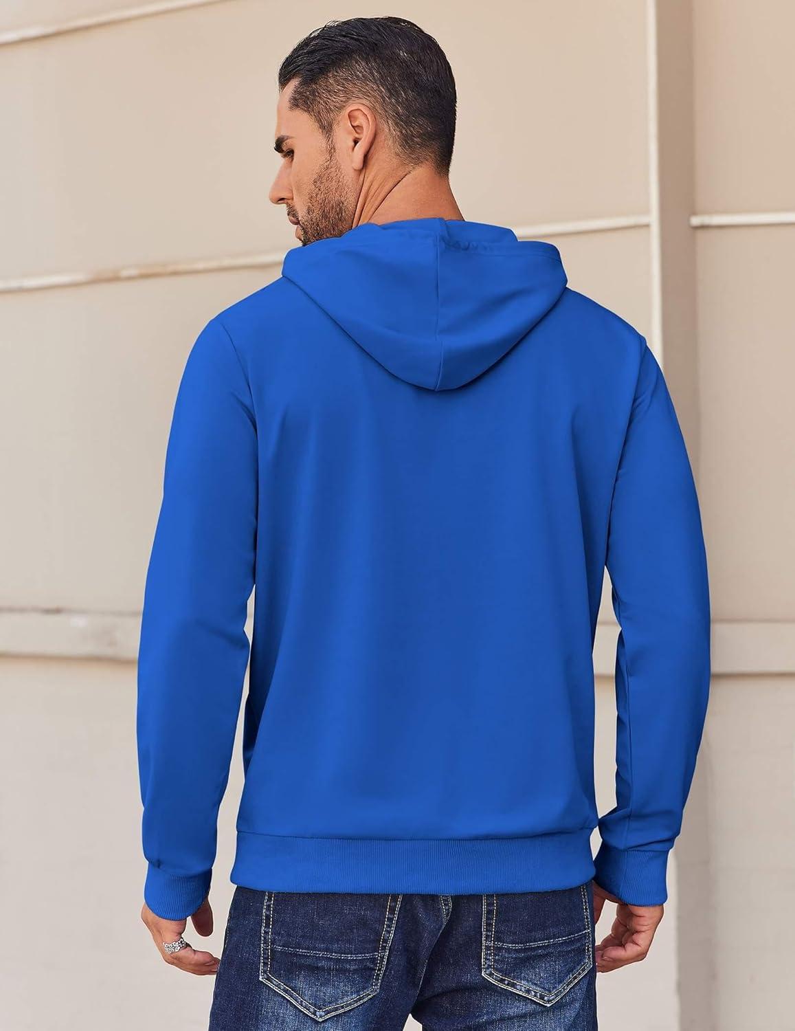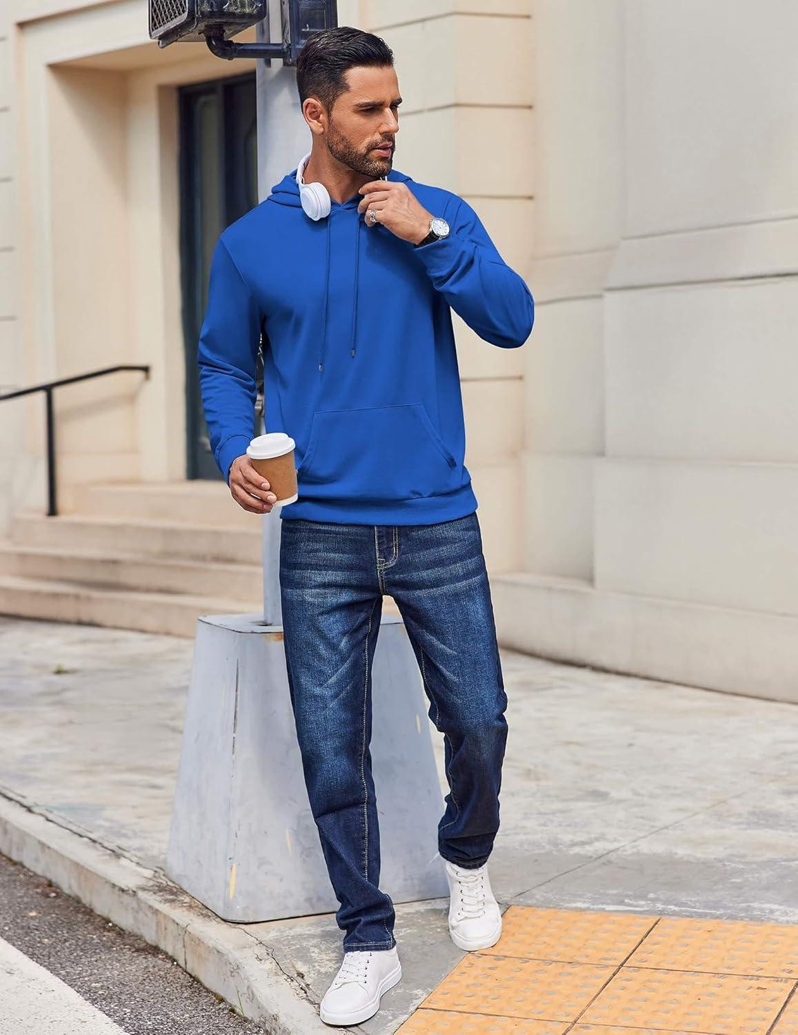 COOFANDY Mens Hoodies Pullover Long Sleeve Casual Fashion Sweatshirts Drawstring Gym Hooded Shirt with Kanga Pocket(Blue)