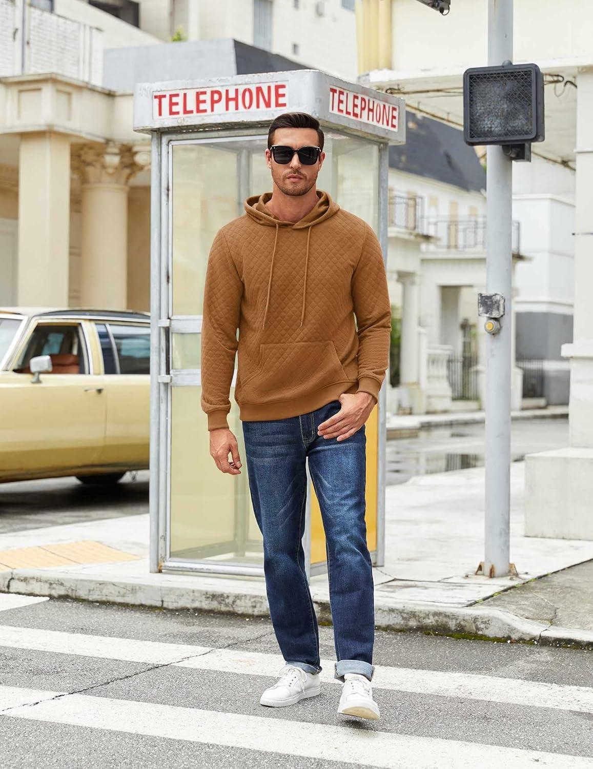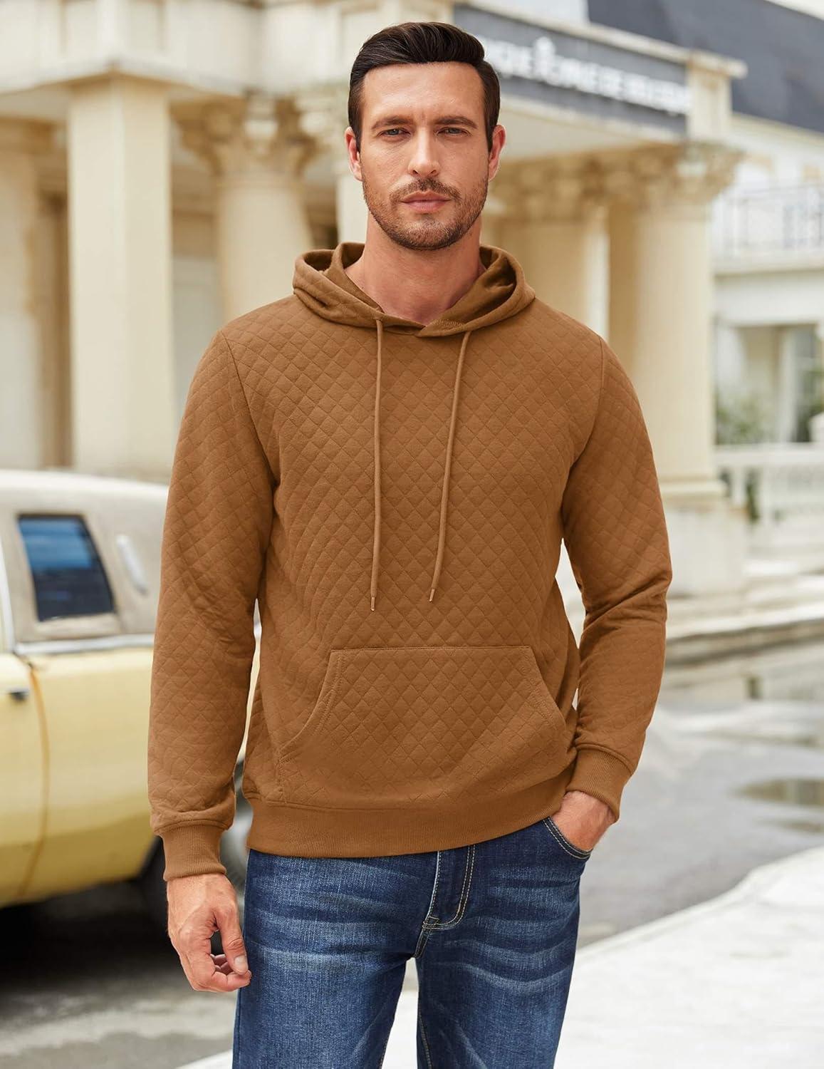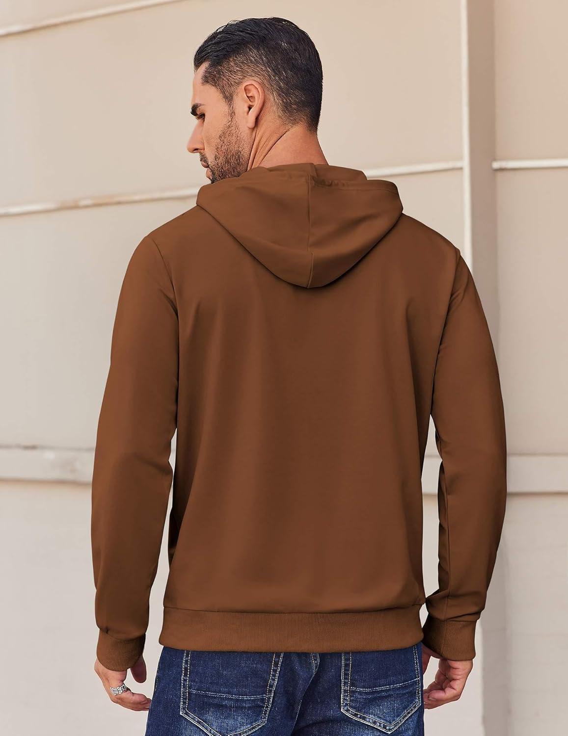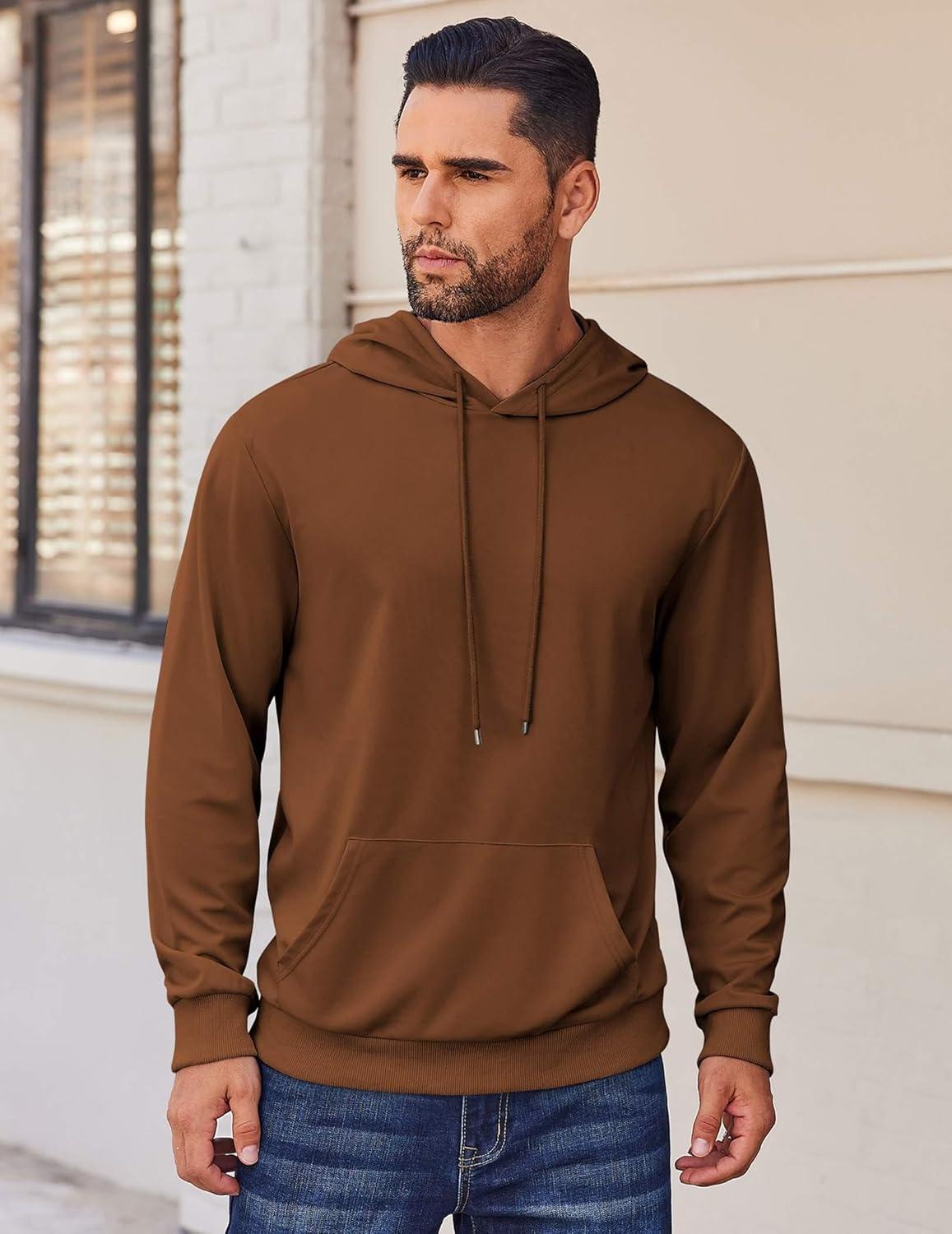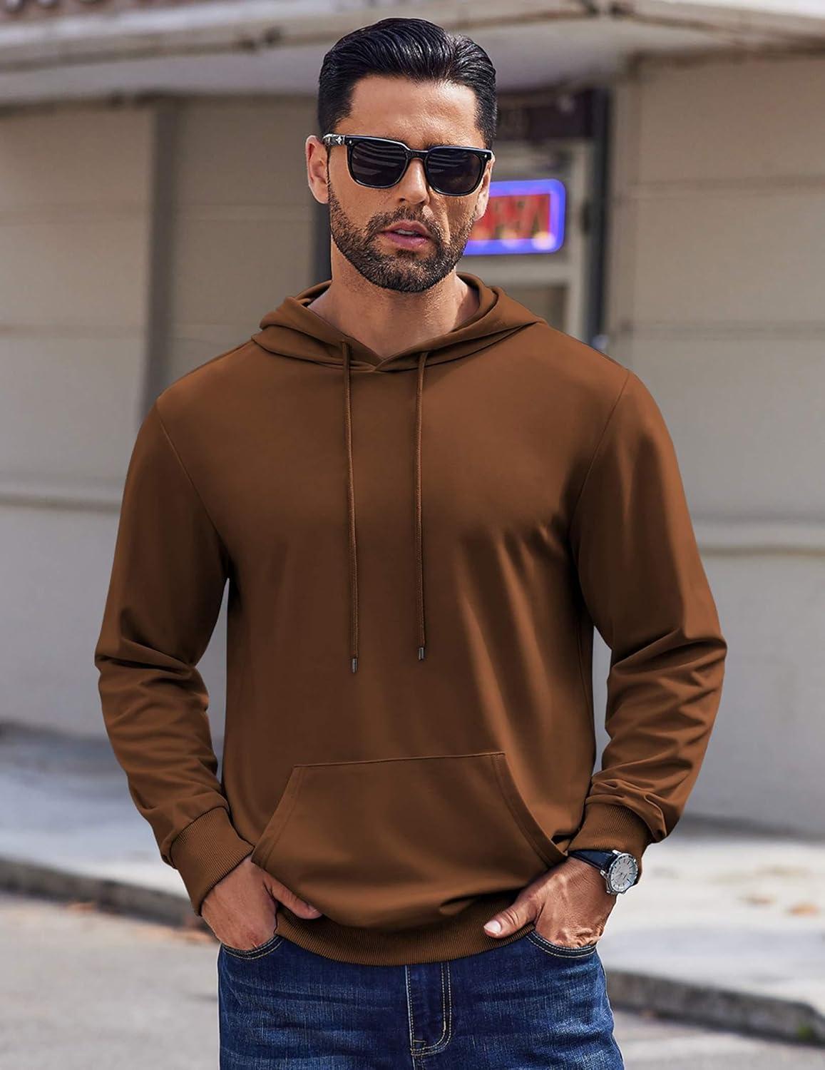 COOFANDY Mens Hoodies Pullover Long Sleeve Casual Fashion Sweatshirts Drawstring Gym Hooded Shirt with Kanga Pocket(Brown)