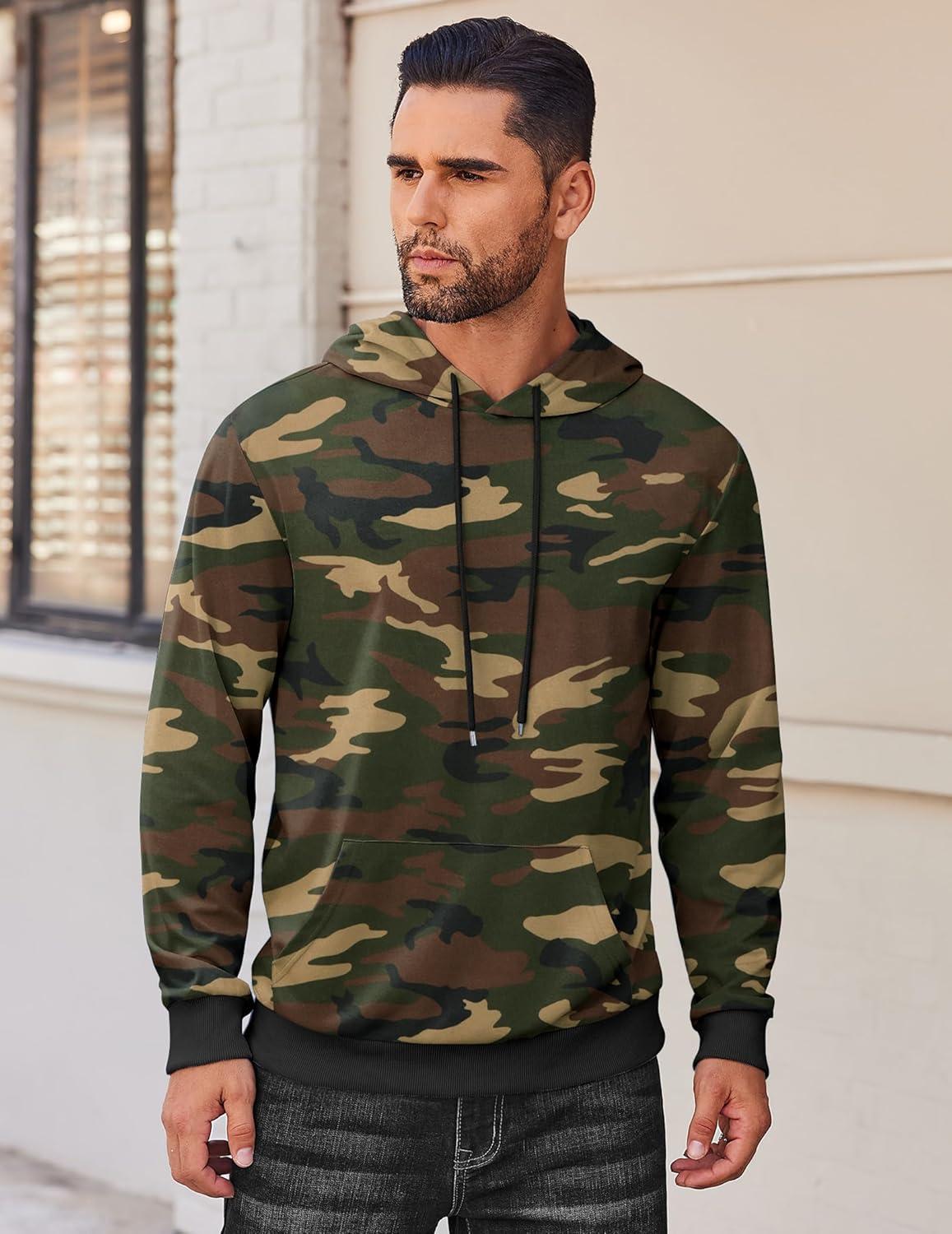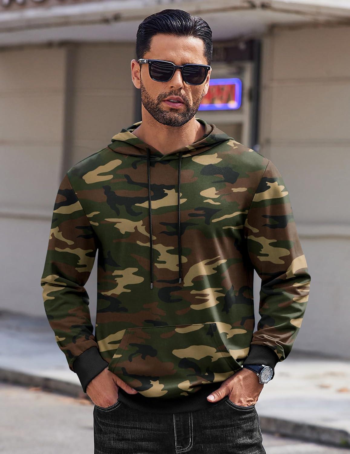 COOFANDY Mens Hoodies Pullover Long Sleeve Casual Fashion Sweatshirts Drawstring Gym Hooded Shirt with Kanga Pocket(Camo)