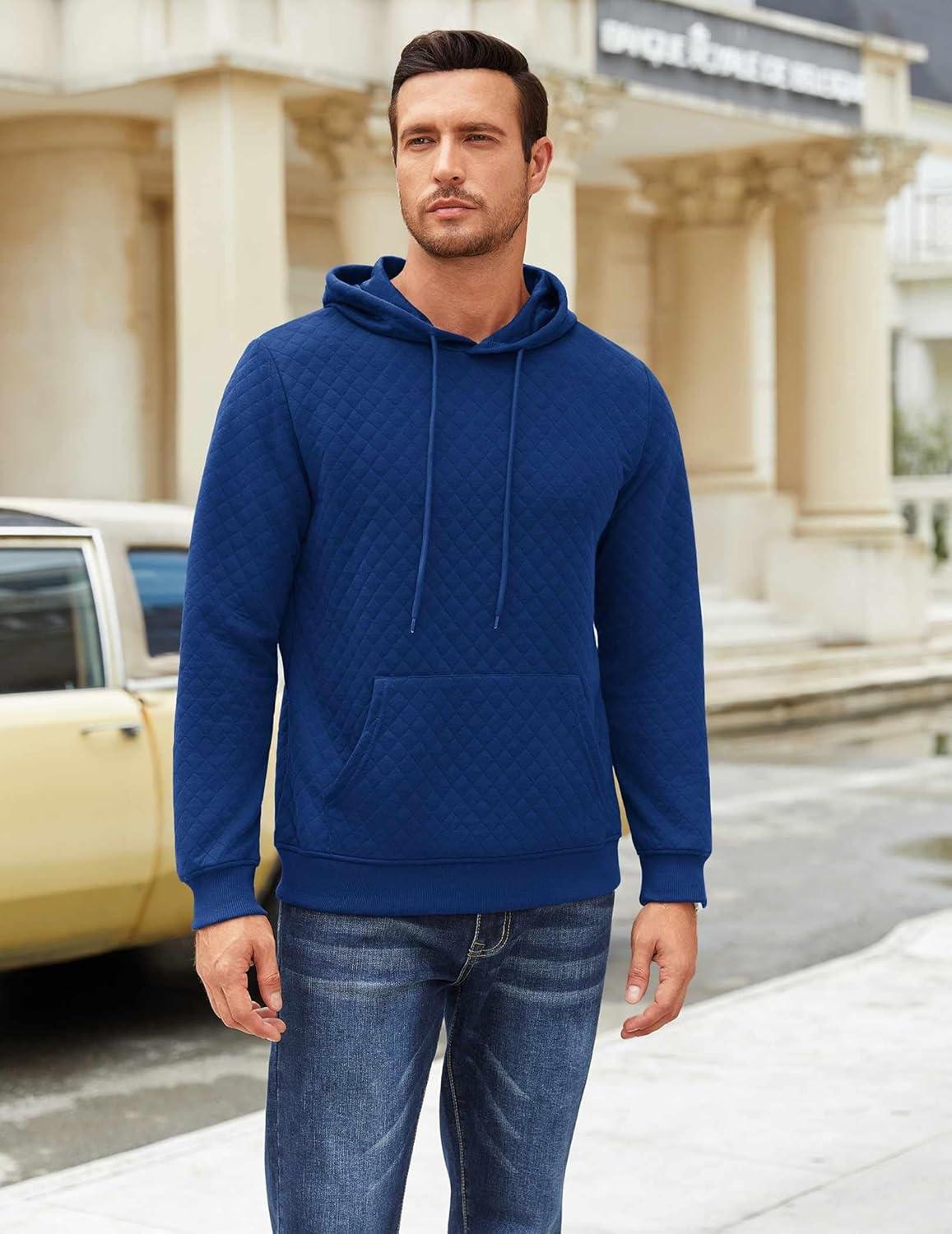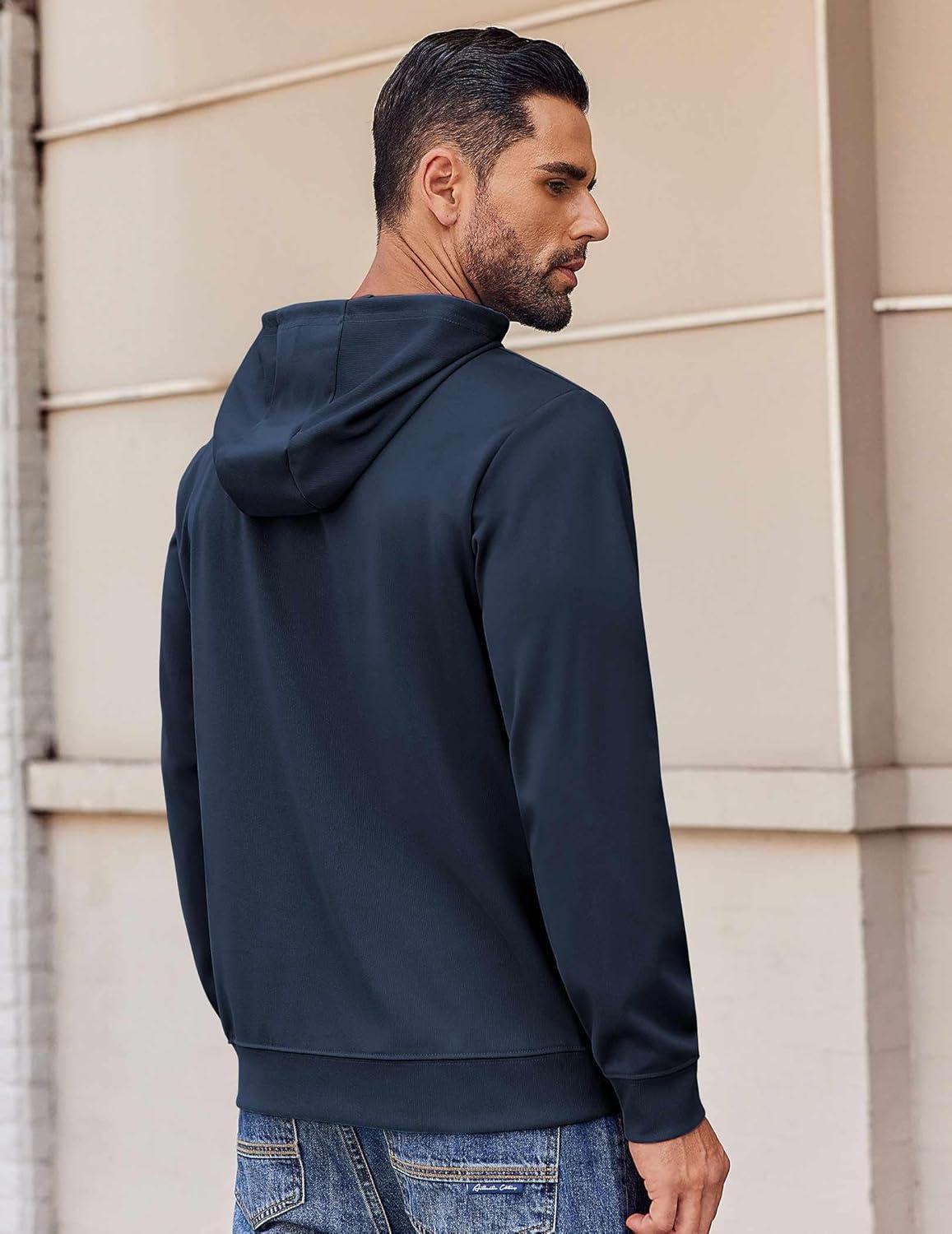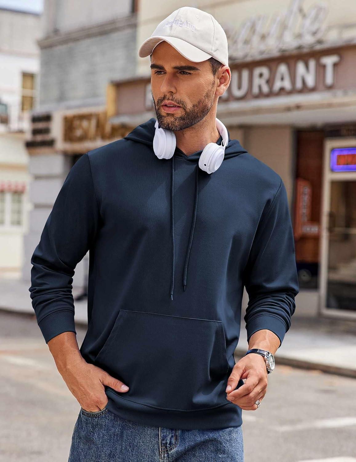 COOFANDY Mens Hoodies Pullover Long Sleeve Casual Fashion Sweatshirts Drawstring Gym Hooded Shirt with Kanga Pocket(Deep Blue)