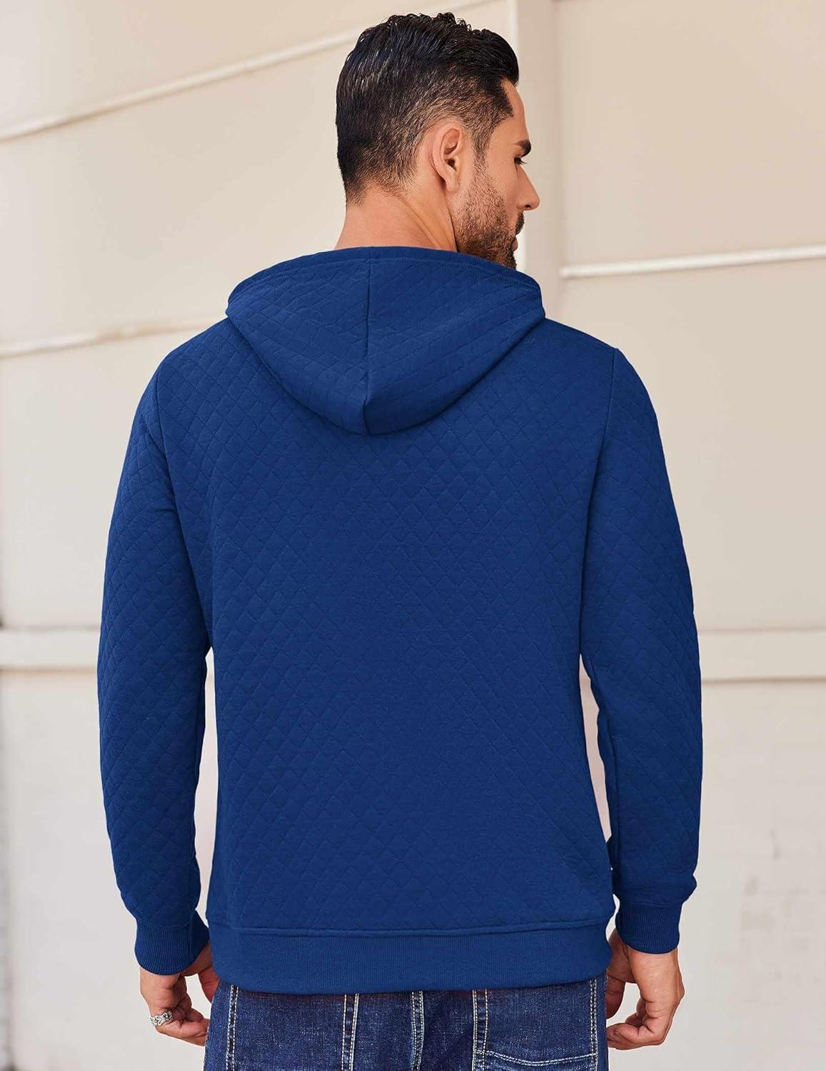 COOFANDY Mens Hoodies Sweatshirts Long Sleeve Fashion Waffle Knit Pullover Hoodie with Pocket(Deep Blue)
