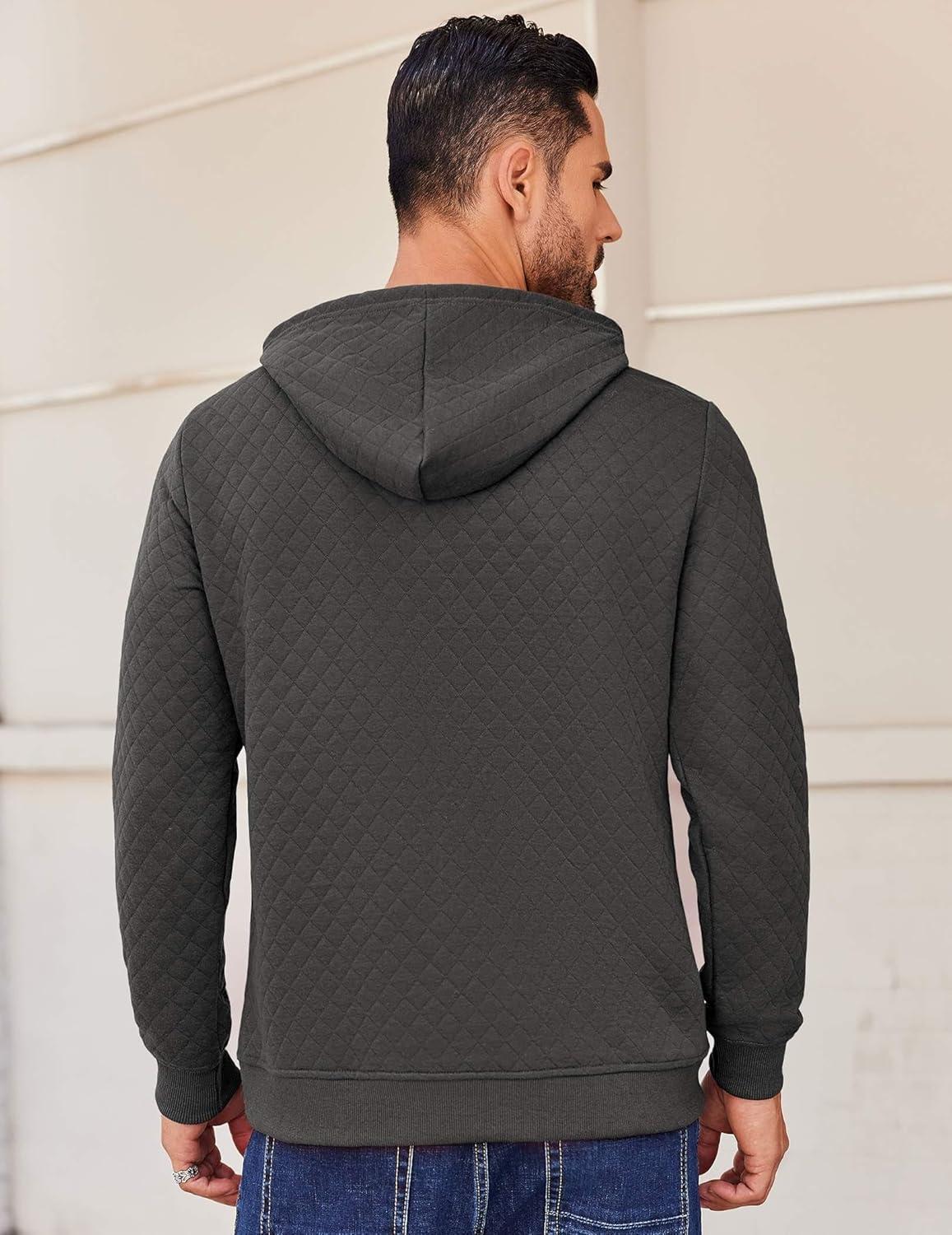 COOFANDY Mens Hoodies Sweatshirts Long Sleeve Fashion Waffle Knit Pullover Hoodie with Pocket(Dark Grey)