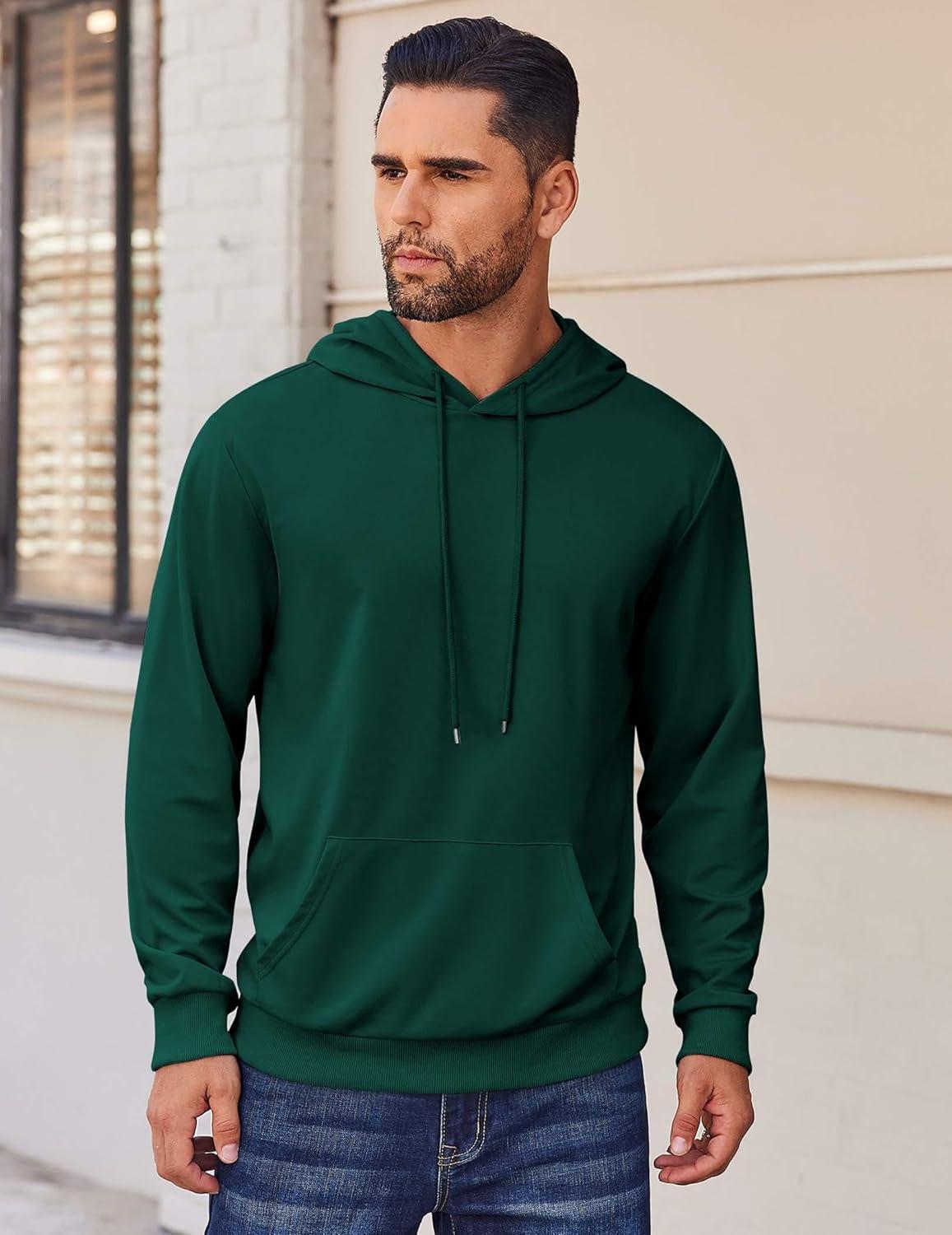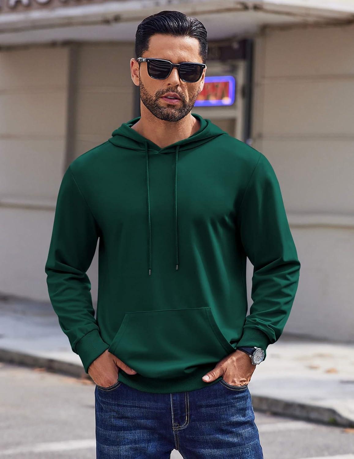 COOFANDY Mens Hoodies Pullover Long Sleeve Casual Fashion Sweatshirts Drawstring Gym Hooded Shirt with Kanga Pocket(Green)