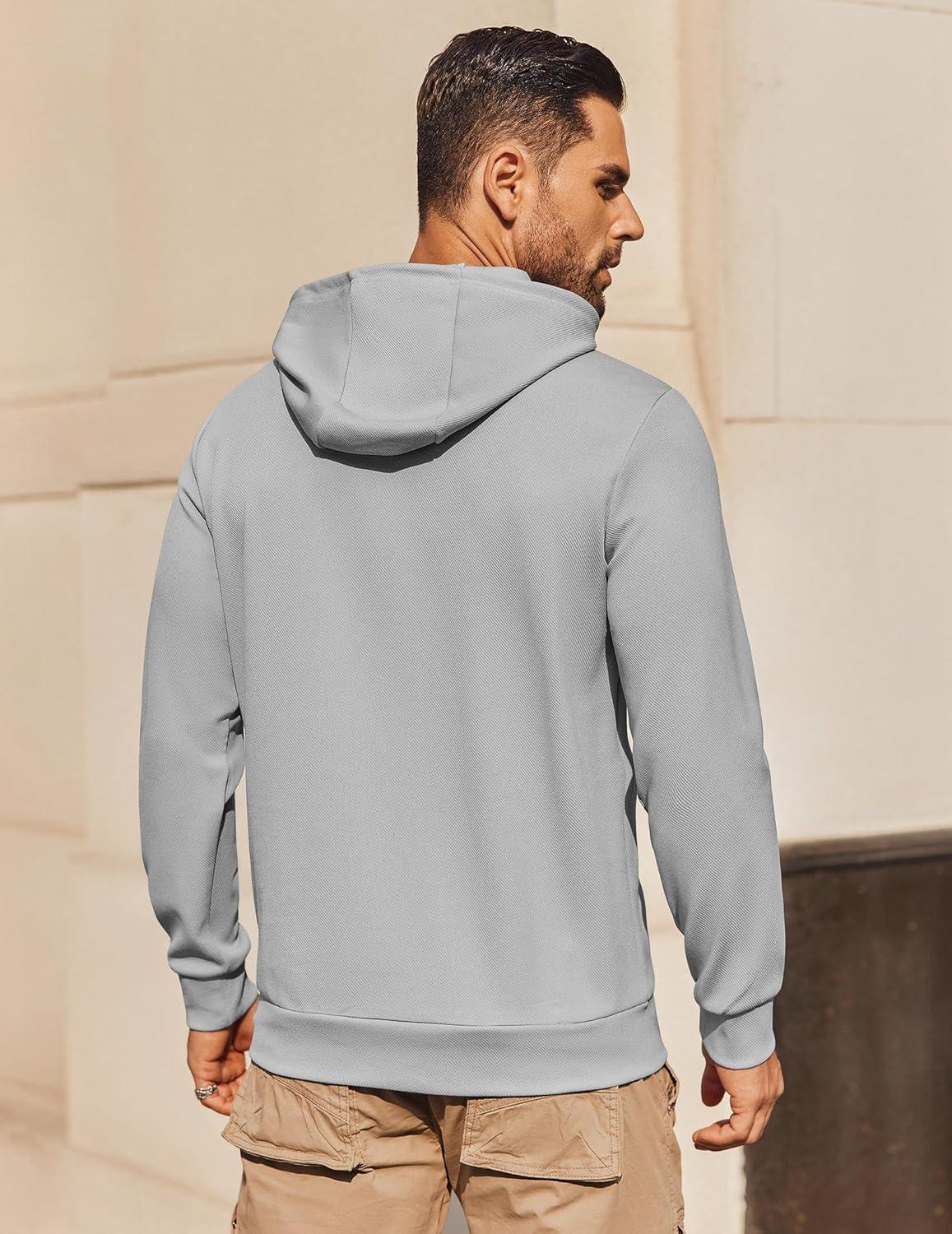 COOFANDY Mens Hoodies Sweatshirts Long Sleeve Fashion Waffle Knit Pullover Hoodie with Pocket(Grey)