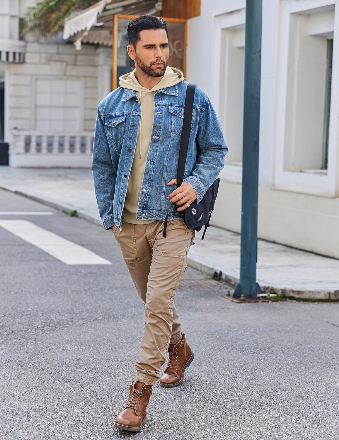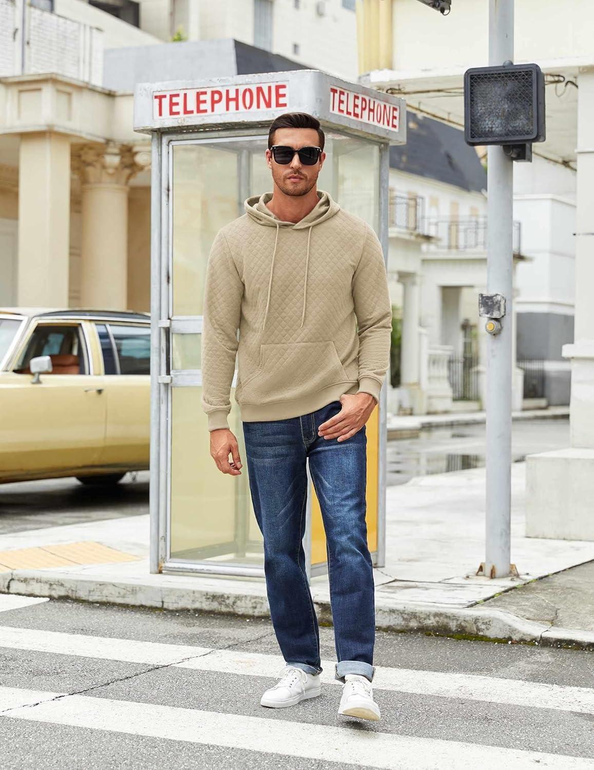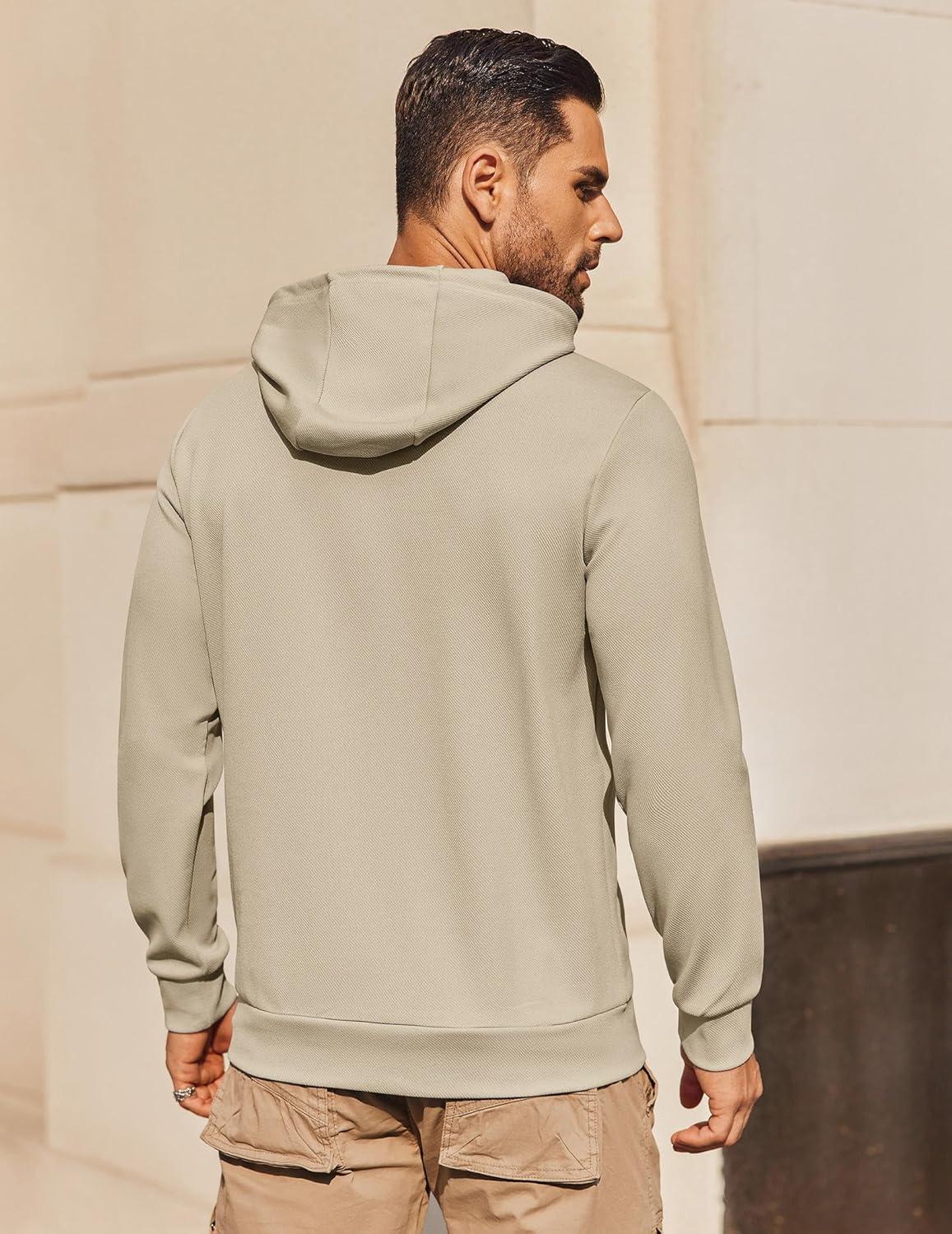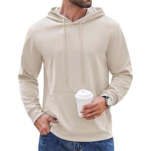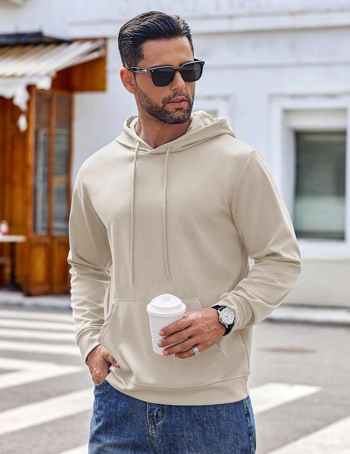 COOFANDY Mens Hoodies Pullover Long Sleeve Casual Fashion Sweatshirts Drawstring Gym Hooded Shirt with Kanga Pocket(Light Khaki)